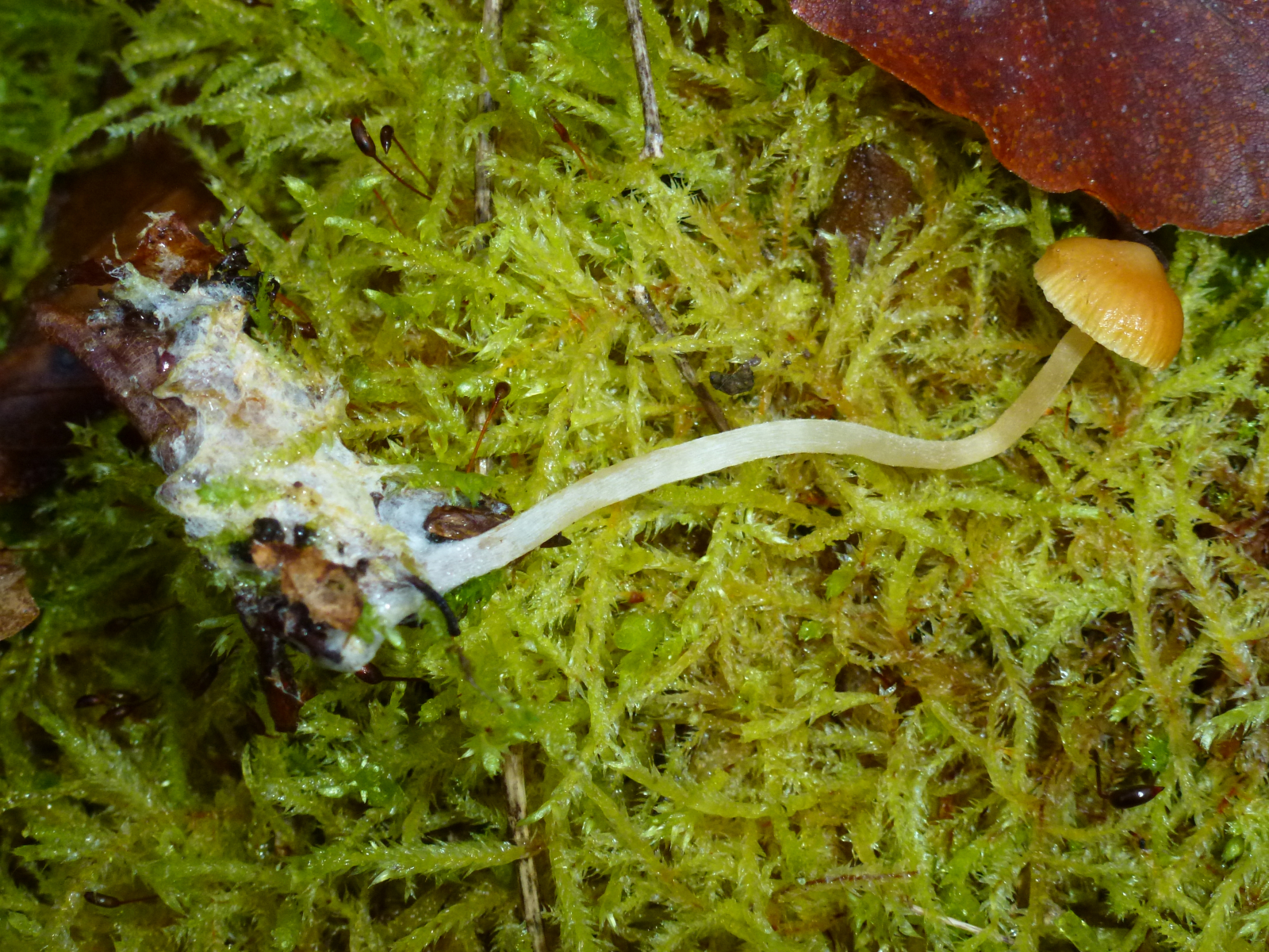 Die Pilze des Teil 1 fand ich im Buchenwald und ich hatte den Eindruck dass sie aus einem Buchenblatt herauswachsen.