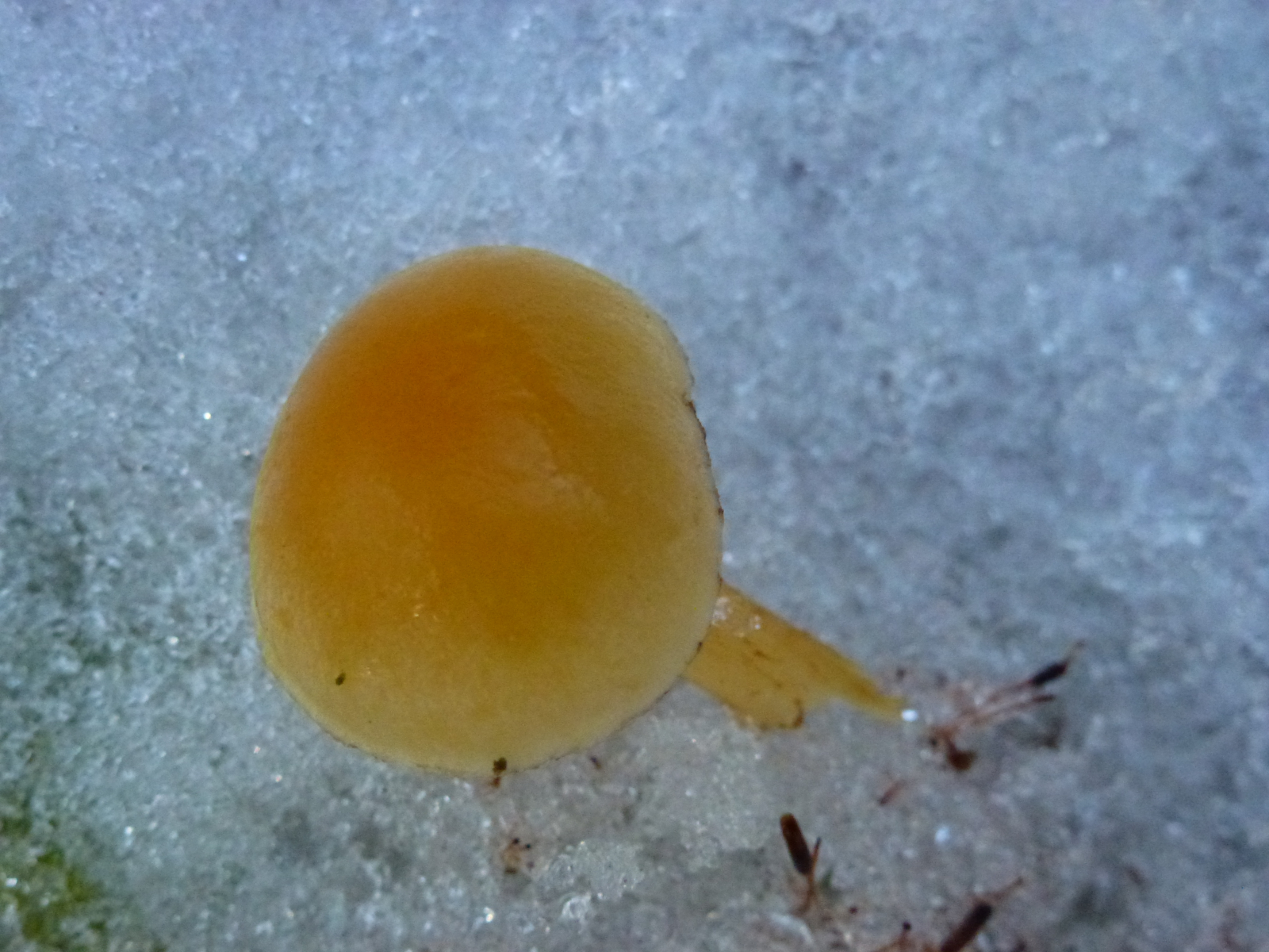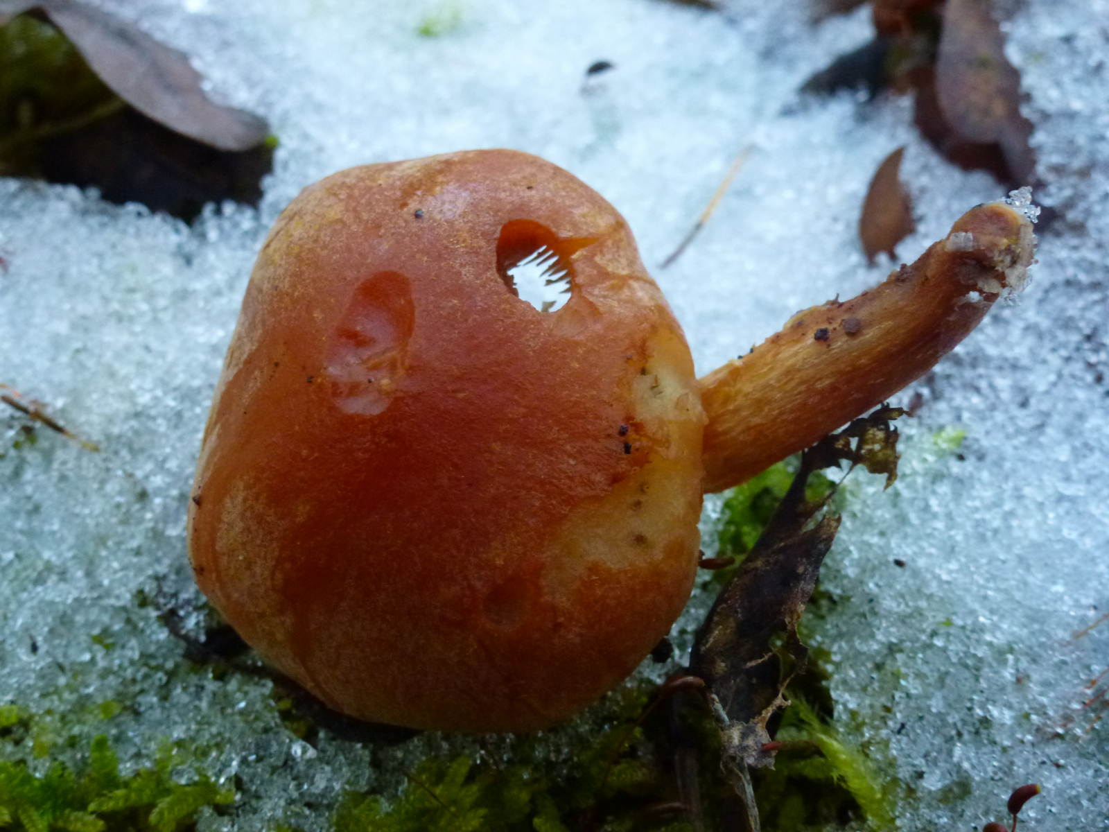 Pilz 2: Gefunden an einem Buchenstumpf. Leider ist der Stiel im unteren Teil im Eis steckengeblieben und abgebrochen.