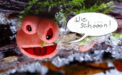 Bei uns vor einigen Jahren wohl noch eine absolute Rarität. Mittlerweile gibt es immer mehr Fundorte. Diesen Pilz gab es am 08. Januar zu sehen. Mit Schneeresten... (Achtung, es könnte sich eine Rahmung ergeben!)