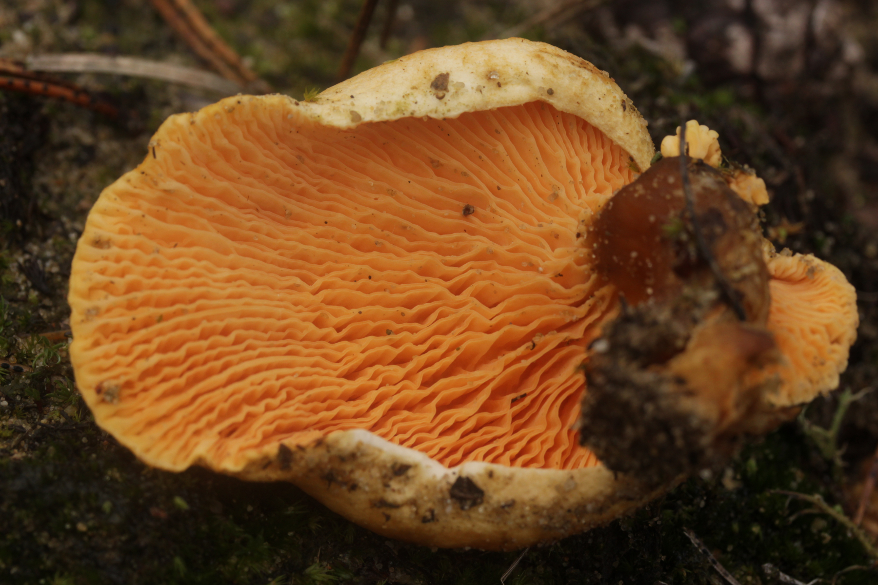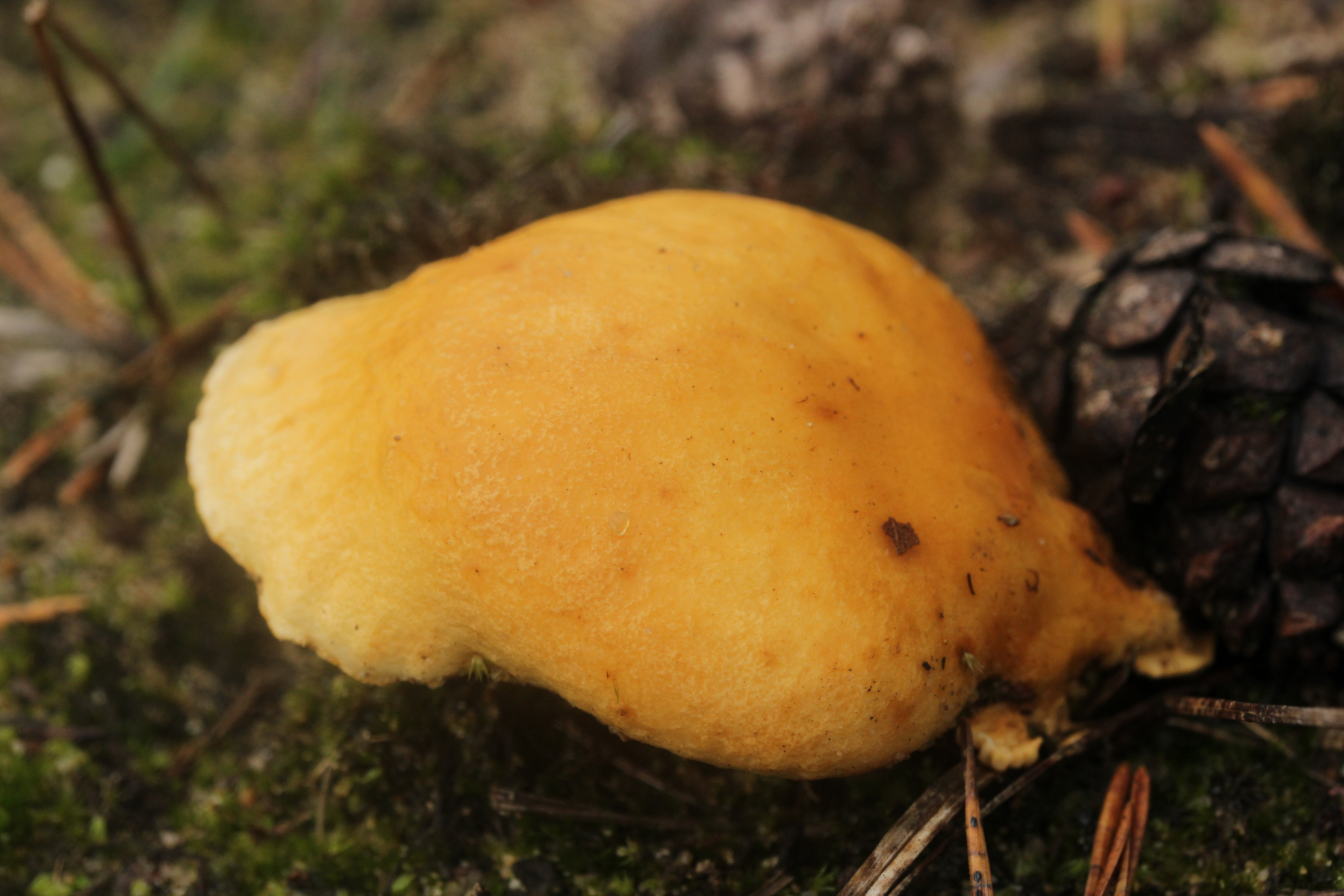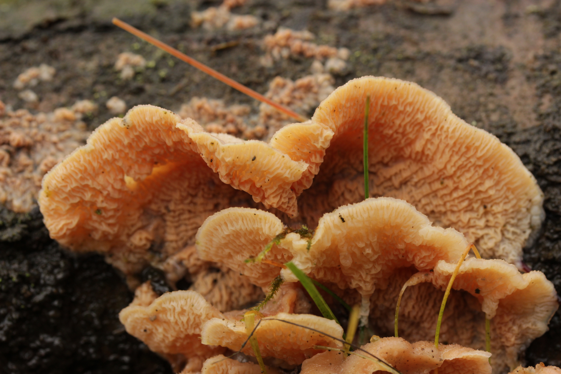 1. Hier hatte Jan-Arne gerade bei Facebook Tapinella panuoides vorgeschlagen. Ich bin da aber eher bei einem mißratenen Hygrophoropsis aurantiaca, da weit und breit kein Holz sichtbar war.