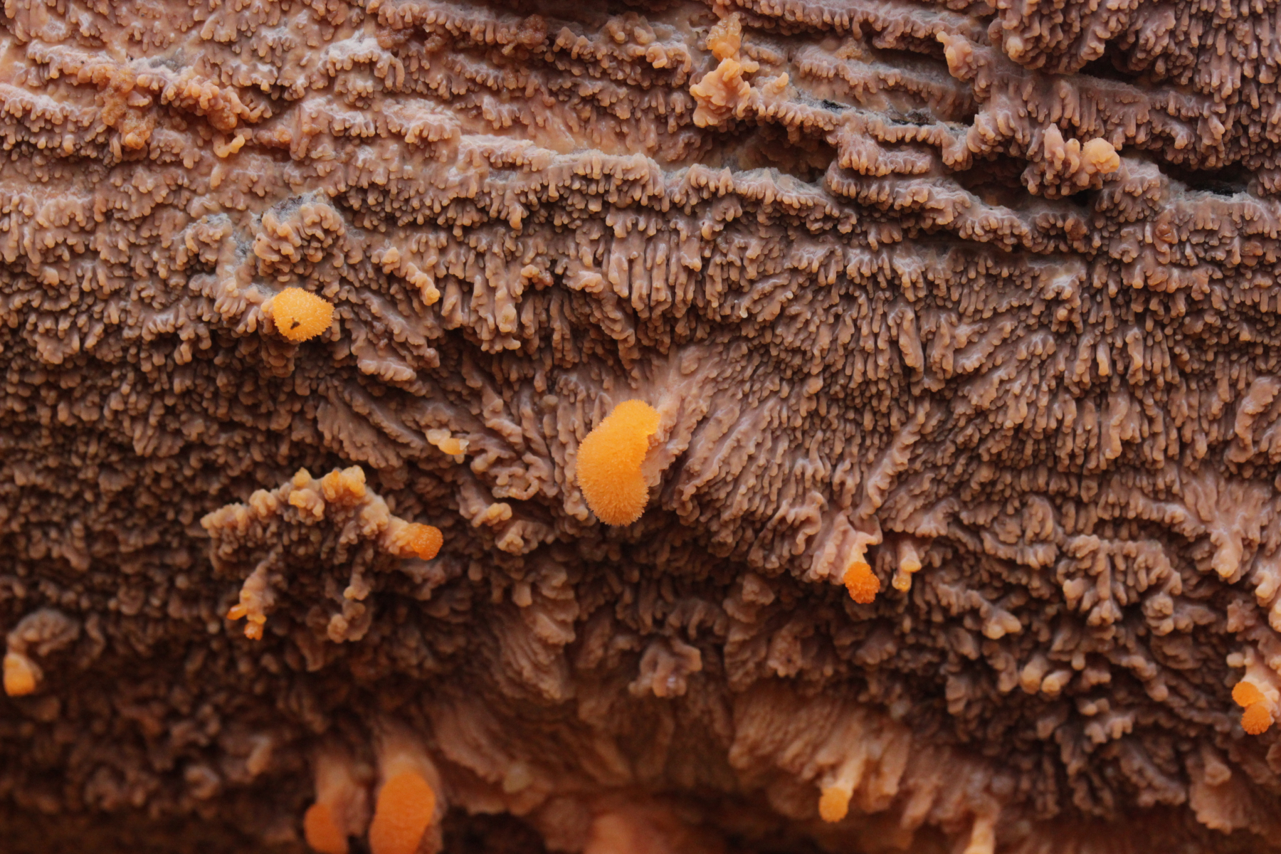 Die Bilder von Phlebia radiata sind hervorragend. Vor allem die, mit den eher blassen Fruchtkörpern, die dafür mit grell orangenen Puscheln bestückt sind.