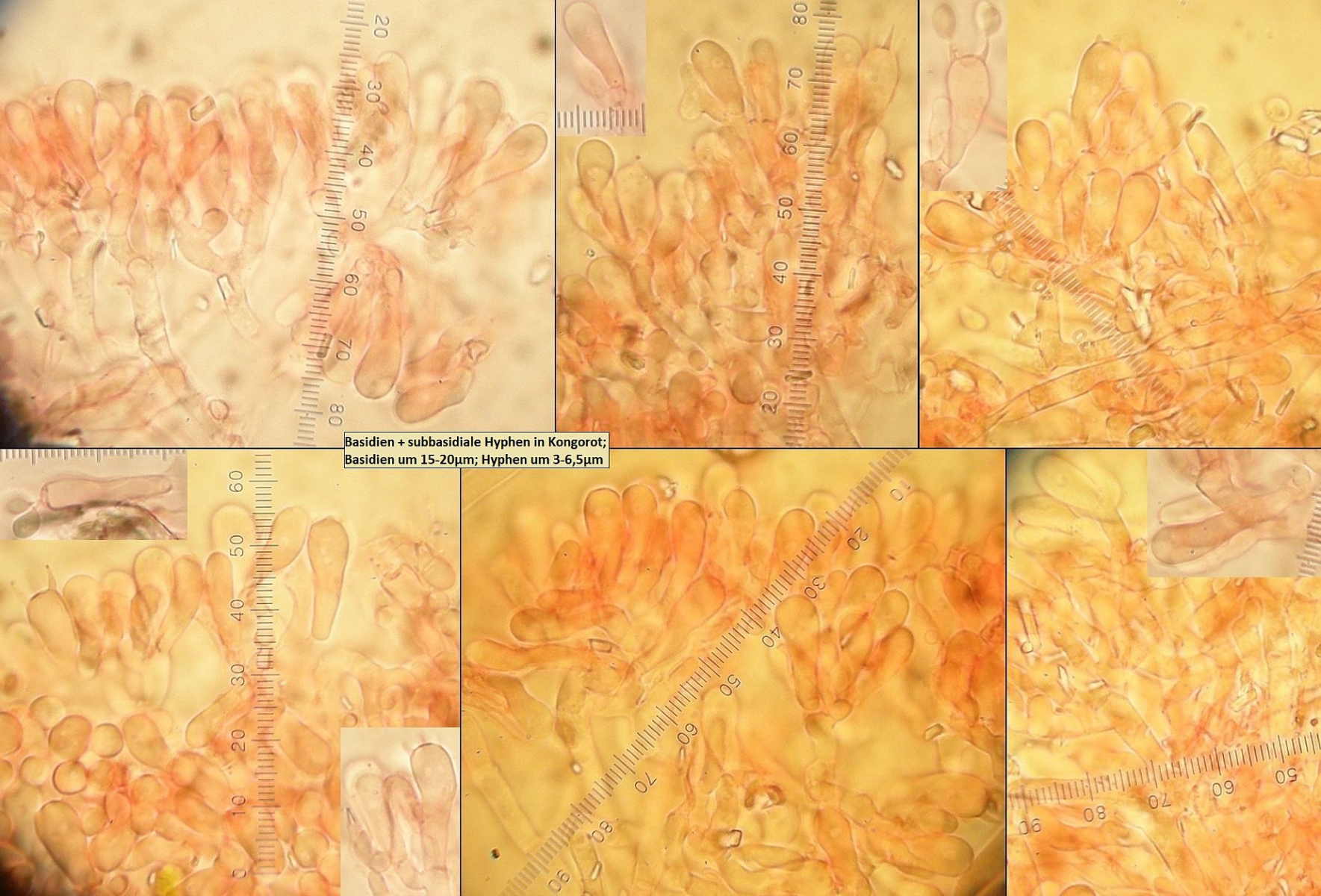 Basidien maximal 22,3 die meisten sind um die 17-19. Subbasidiale Hyphen bei 4.