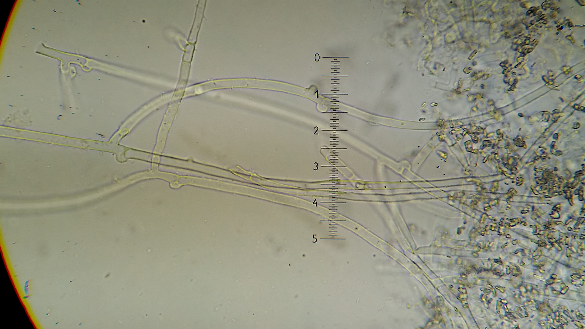 Basalhyphen mit Schnallen, dieser Kolletion hatte keinerlei Kristalle an den Hyphen.