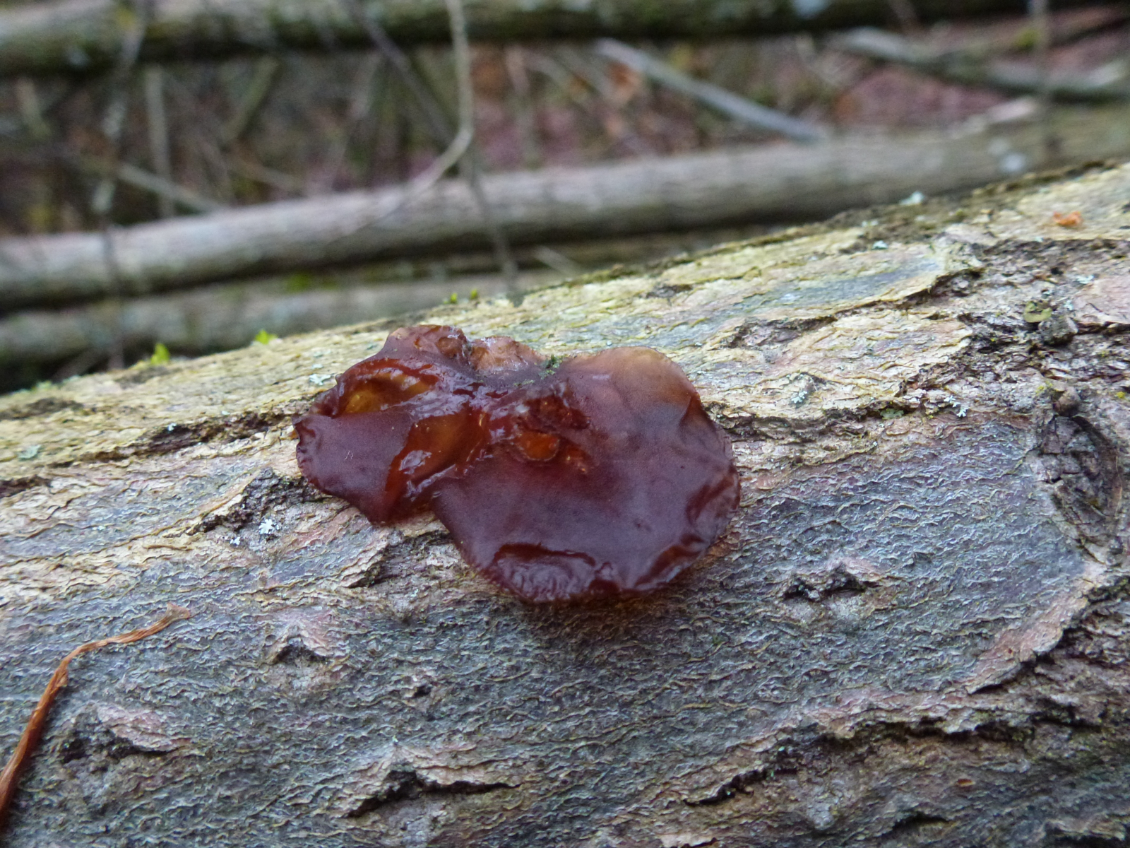 wenn sich die Oberfläche rau und "stoppelig" anfühlt, wäre auch noch Exidia truncata möglich. Ich vermag das anhand der Bilder nicht su sagen; ebenso bei deinem weißen Drüsling von vorhin. So was habe ich lieber in der Hand, bevor ich was dazu sage.
