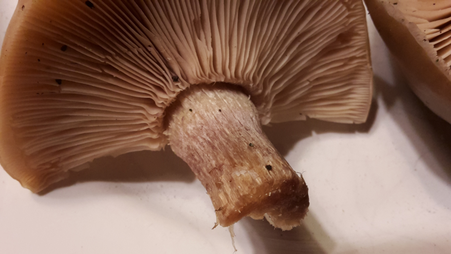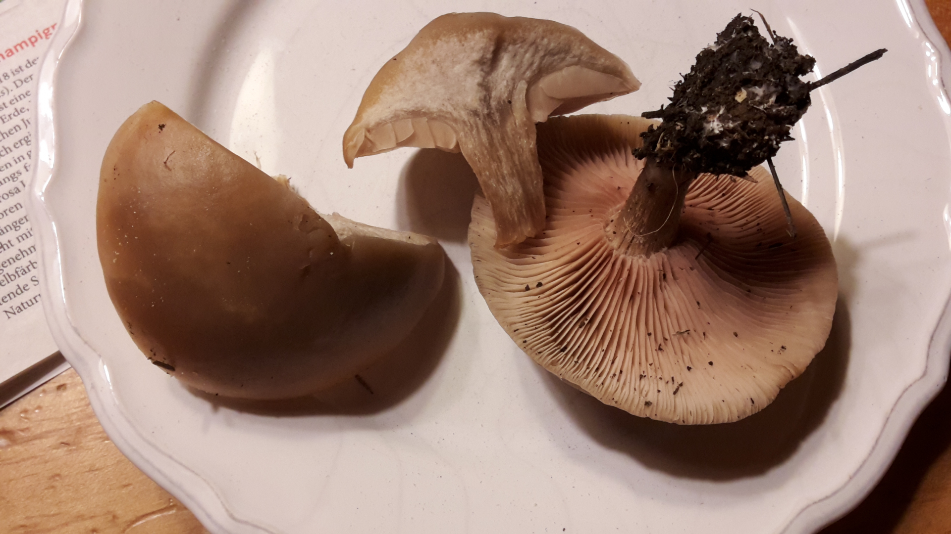 Lamellen entfernt stehend und untermischt, beige-grau, ausgebuchtet, Rand ganz leicht eingerollt,
