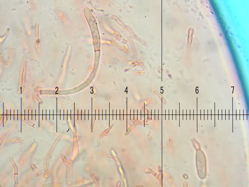 13 400x, KF + Lactoglycerol, Primordialhyphen bis 4,5 µm breit und mehrfach septiert