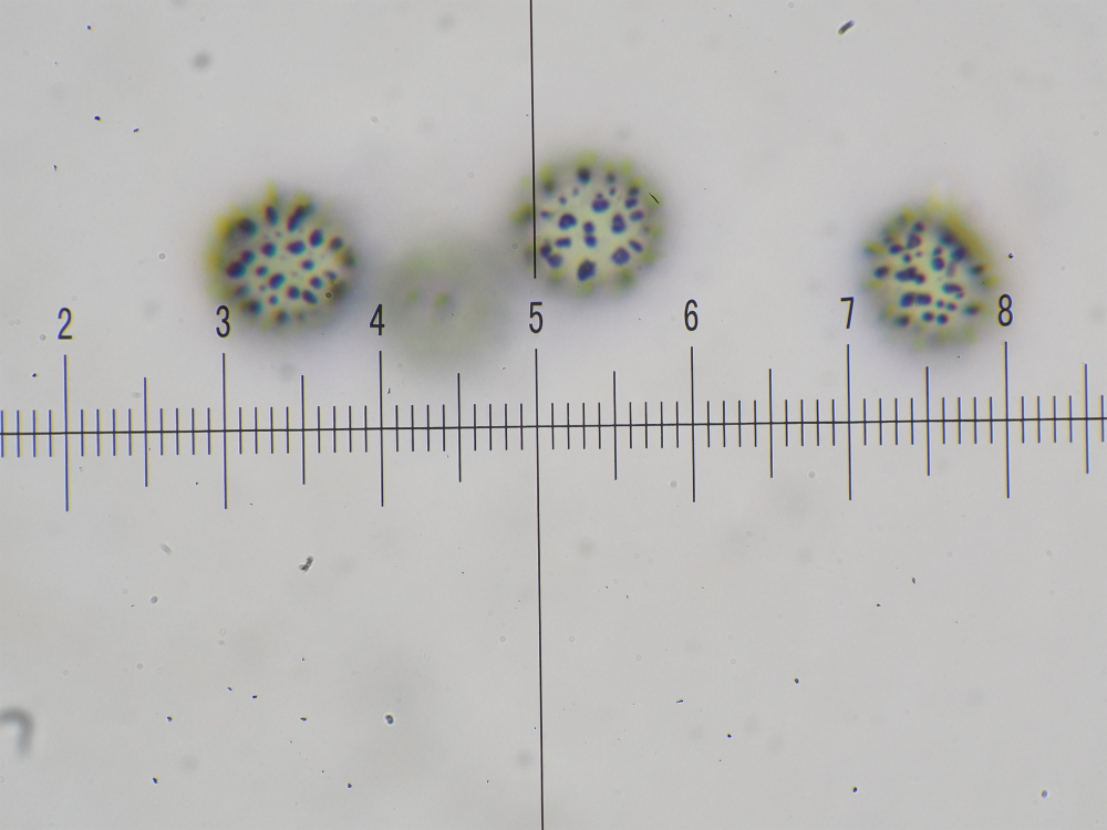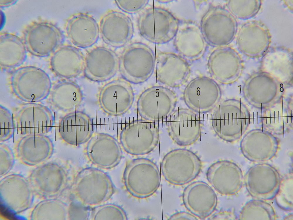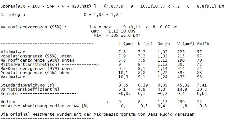SPOREN: Sporen[95% –• 108 –• SAP –• v –• H2O(nat) ] = (7,8)7,9 - 9 - 10,1(10,3) x 7,2 - 8 - 8,8(9,1) µm