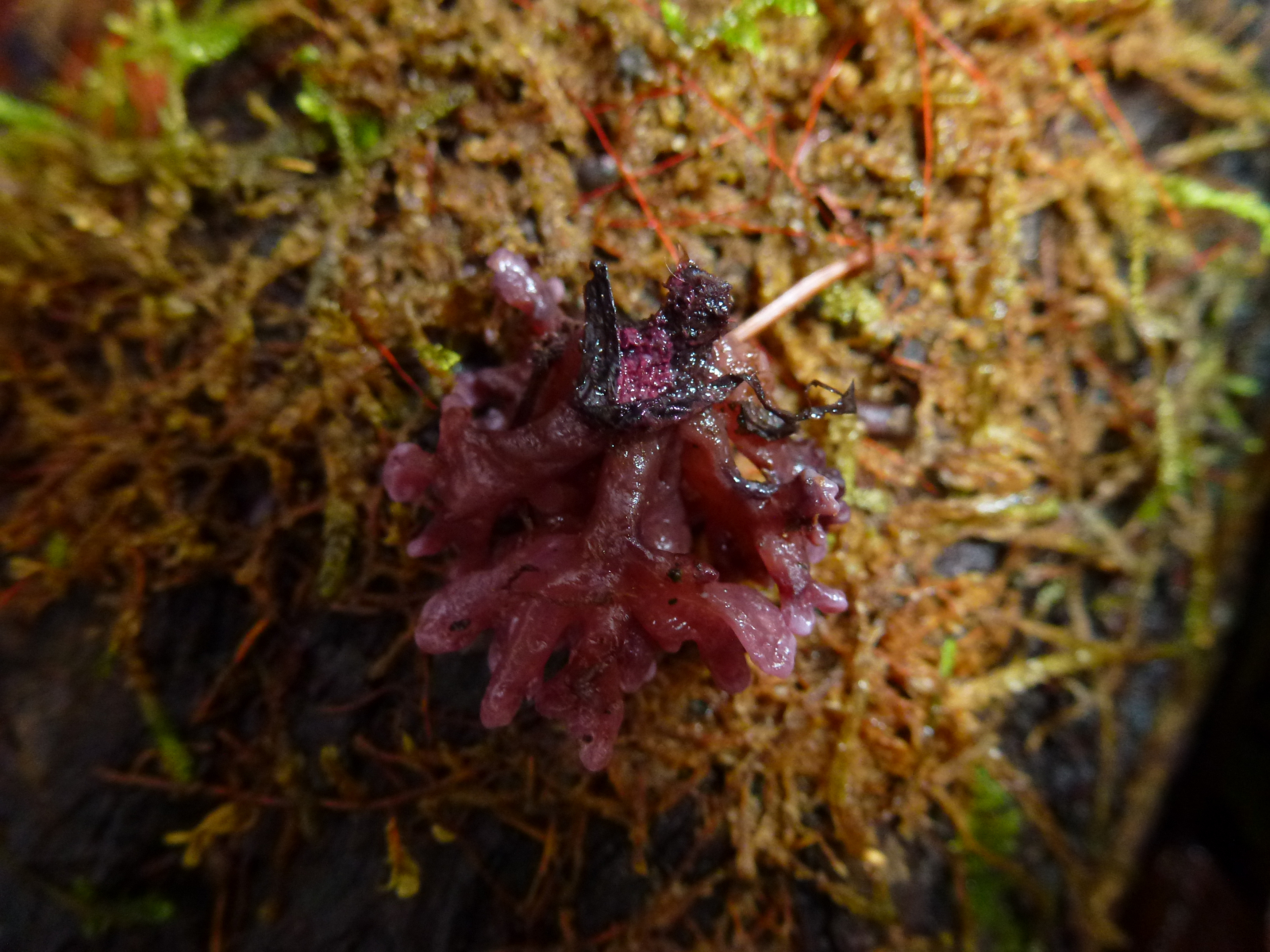 Oben die Bilder, diese knubbeligen verzweigten Fruchtkörper, zeigen aber eine Nebenfruchtform, und (wenn ich mich nicht irre) hat (bei diesen beiden Arten) nur Ascocoryne sarcoides (Fleischroter Gallertbecher) eine Nebenfruchtform.