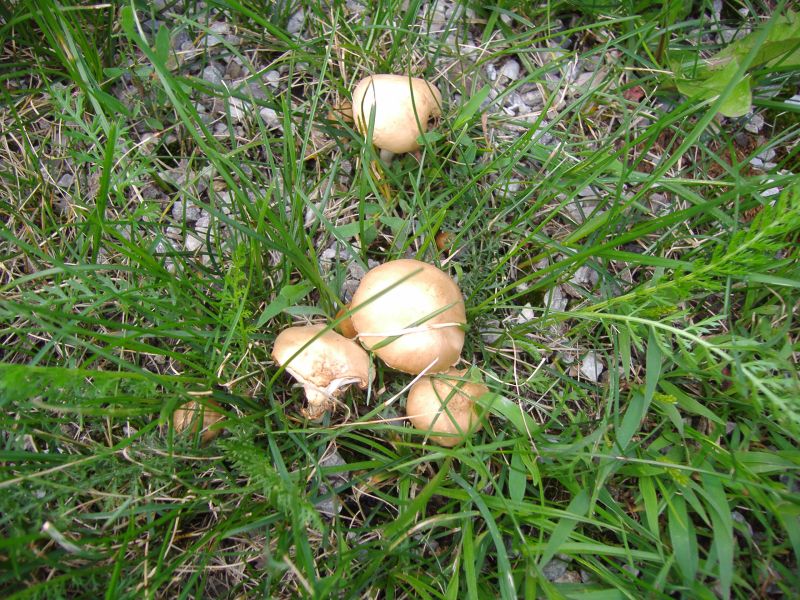 Der Rasenpilz könnte ein Feldschwindling sein, nur ist das mit den Farben auf einem Foto immer so eine Sache.