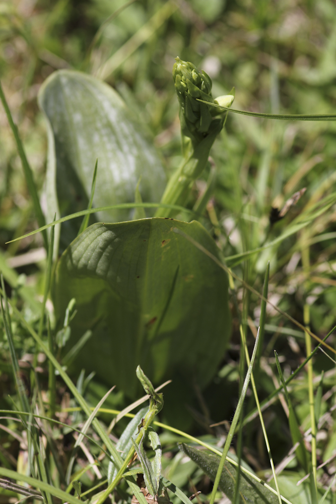 Ich habe an diesem Standort früher schon einige Exemplare der Grünen Waldhyazinthe gefunden, an der Blüte würde ich sie auch erkennen.