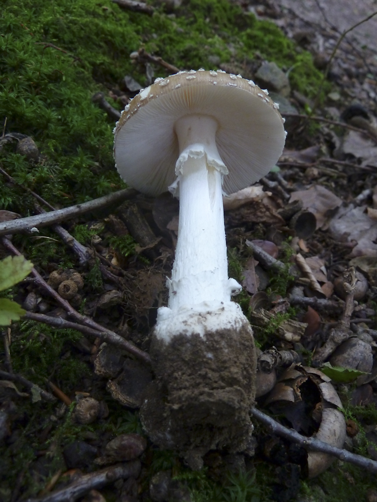 Nach Stöbern in der Literatur bin ich zu der Einsicht gelangt, dass es sich ebenfalls um einen Perlpilz handelt, und zwar um den
