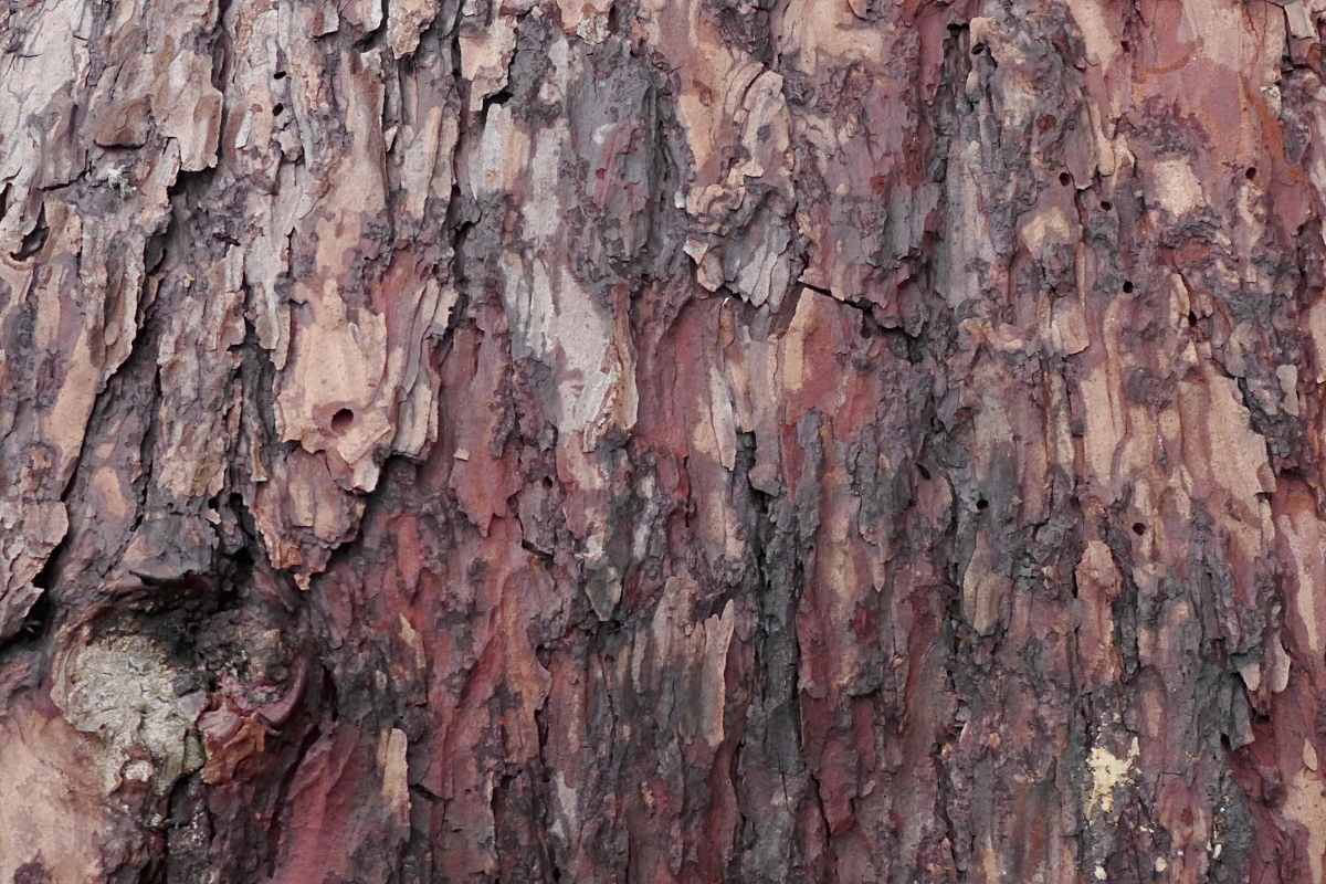 ähmmm, Baumrinde, ABER Totholz, wo schon einiges abplatzt (recht kleinteilige Stückchen) , alles war ziemlich rot, auch die Schnitte im Holz.