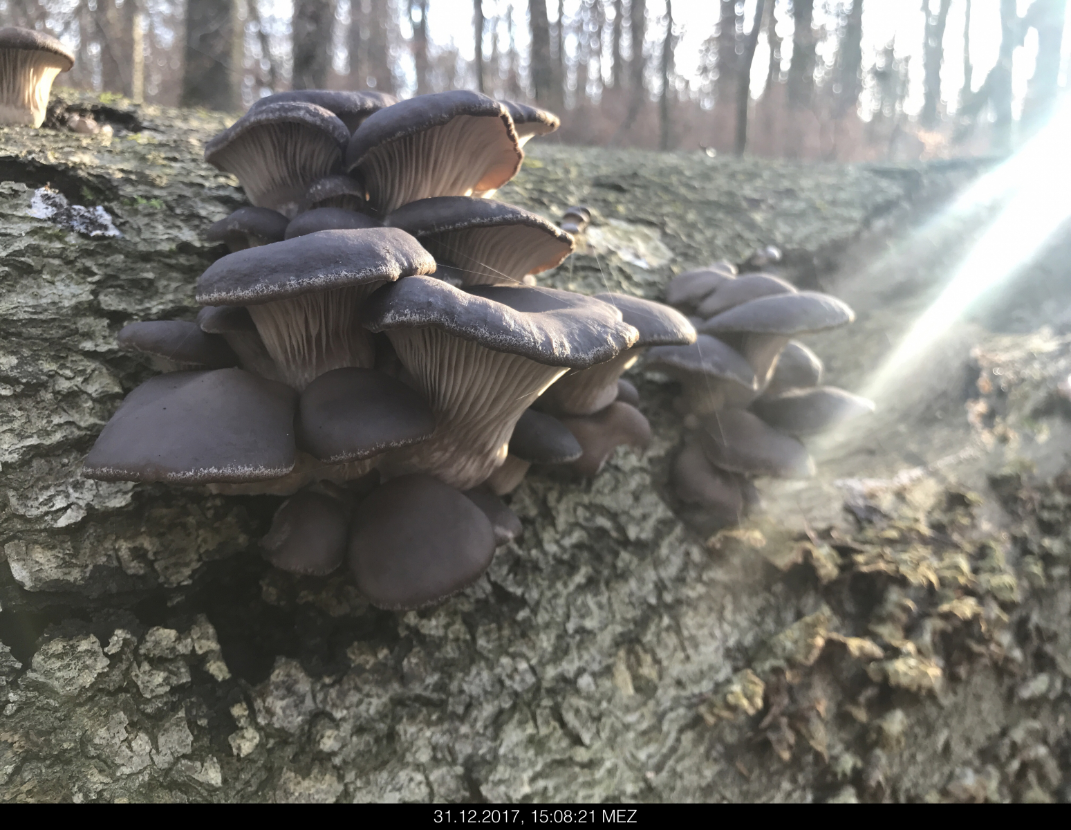 Ich habe heute, bei 5 Grad über Null, auf einem umgefallenen Buchenstamm jede Menge junger Austernseitlinge gefunden. Habe mich allerdings über die blassen Stellen gewundert. Es kann auch gut sein, dass die Pilze in den letzten Tagen des öfteren eingefroren und wieder aufgetaut sind. Die weiße Farbe kann man nicht, oder nur zum Teil abwischen.