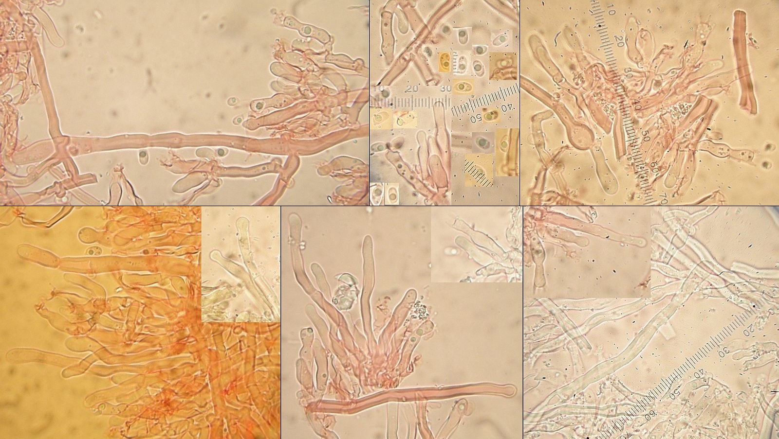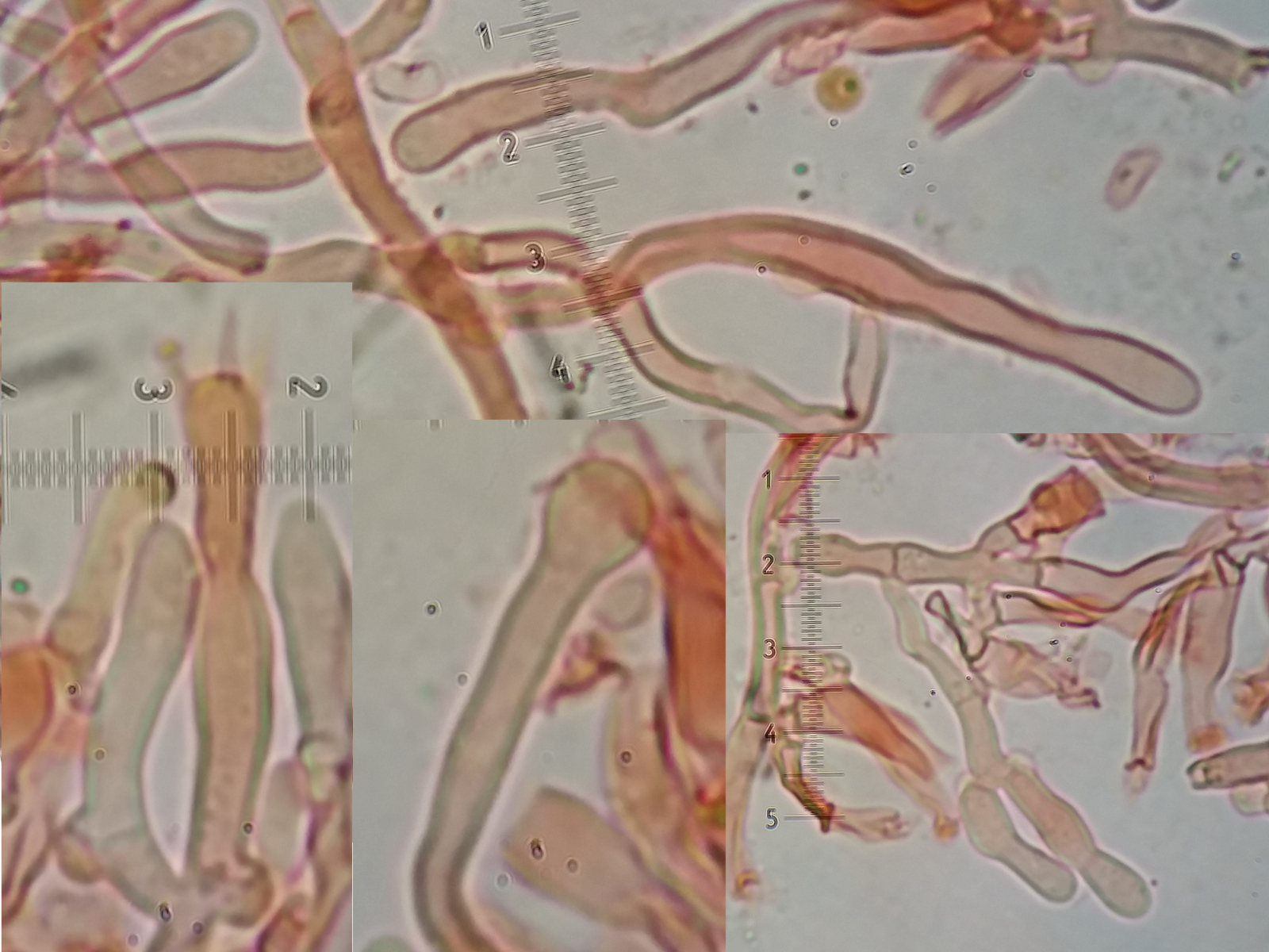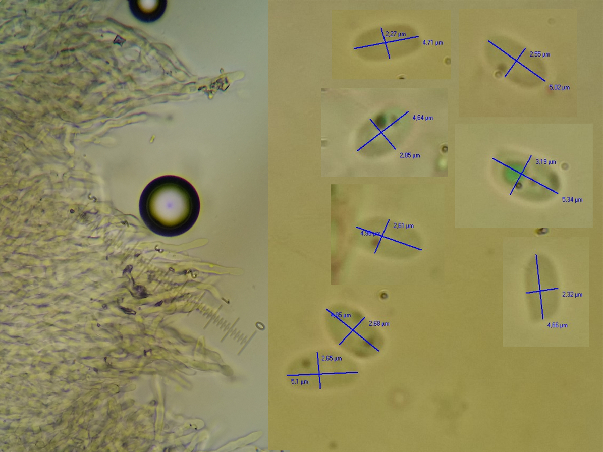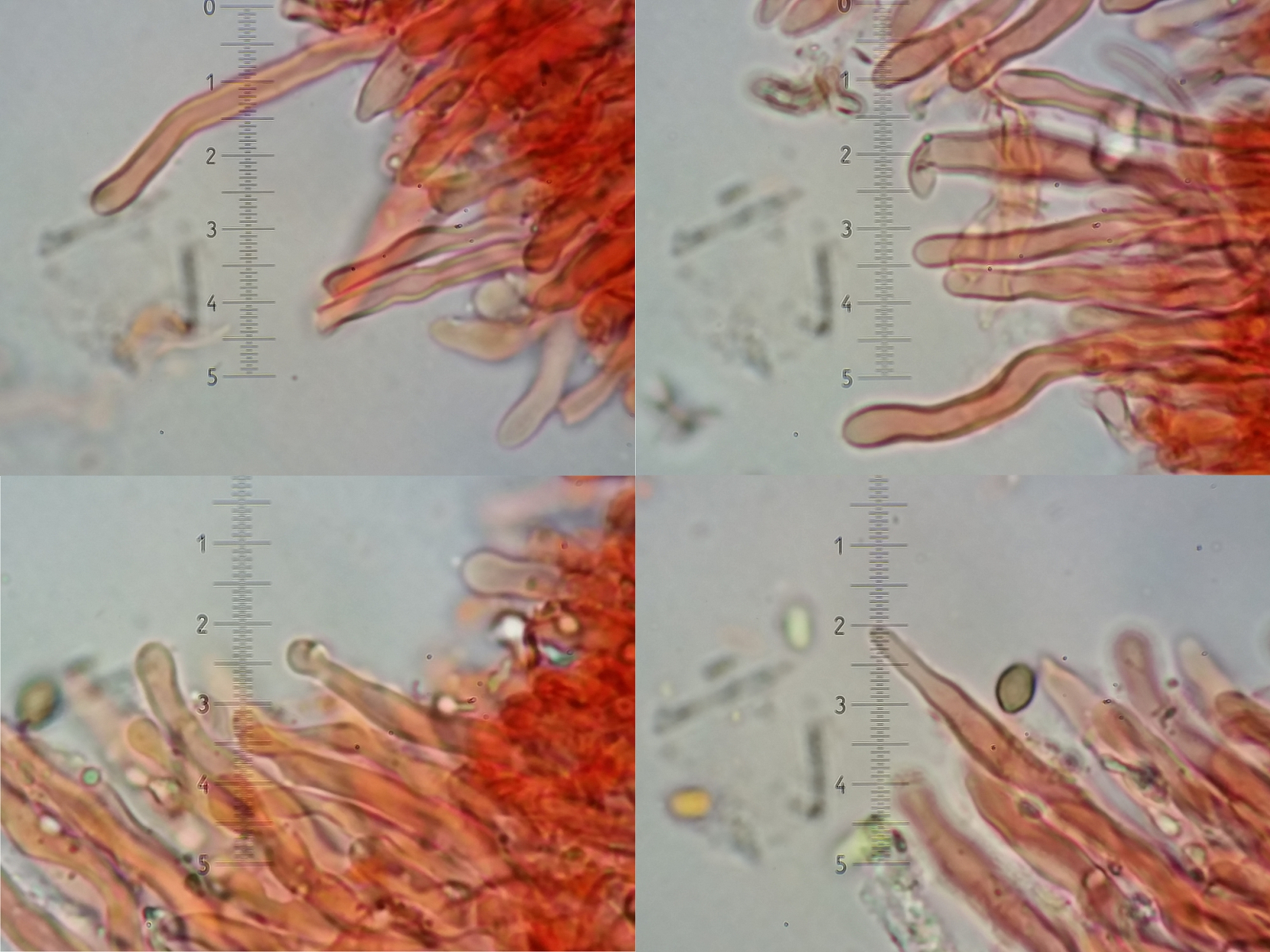 In dem Fall muss man wohl gut aufpassen mit den Sporen, und wirklich genügend Exemplare ausmessen. Glücklicherweise gibt's ja noch die weiteren Charakteristika: Die Kristalle an den Hyphen in den Zähnchenspitzen würde ich bei Marios Kollektion gerne noch sehen.
