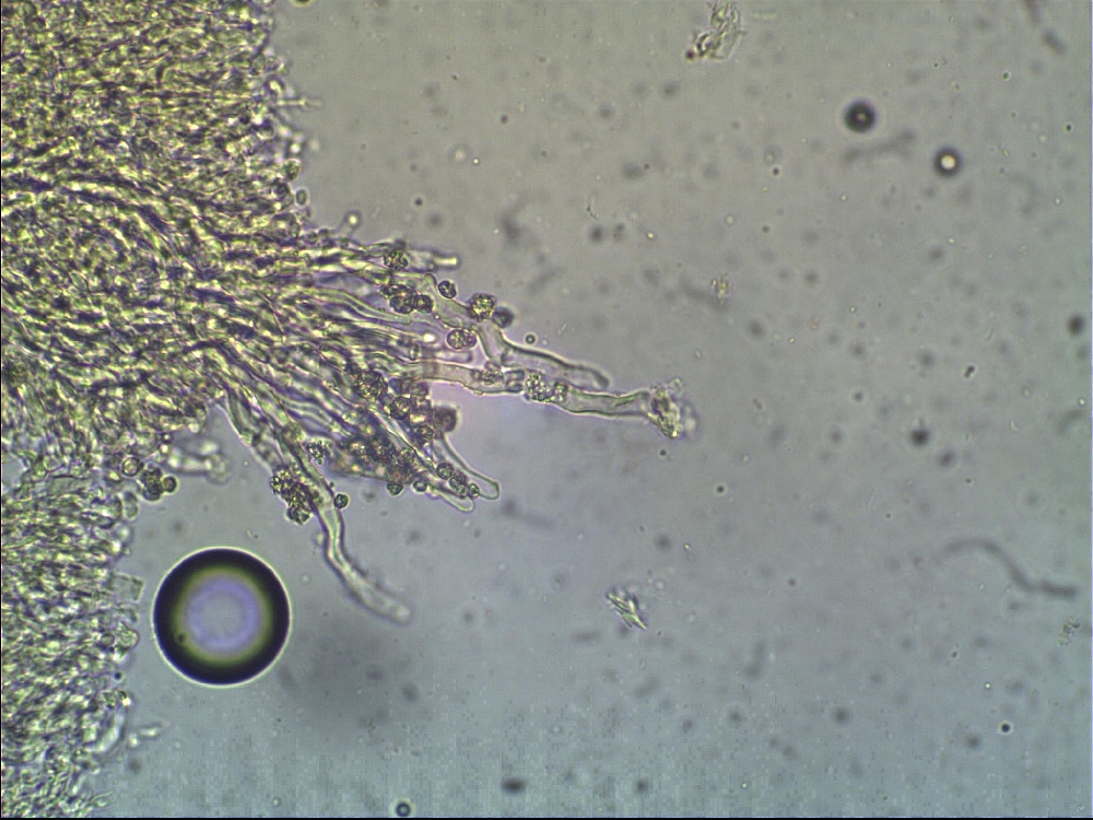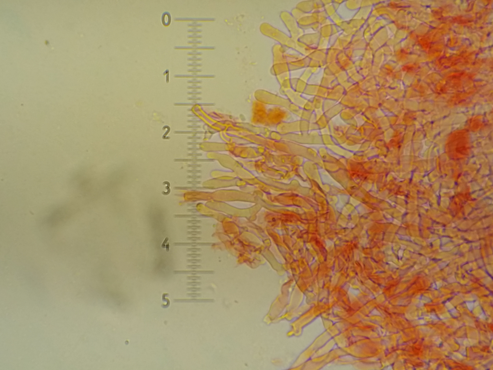 Nun zu den Pilz eigentlich bin ich sicher aber ich wollte es zur Diskussion stellen ( nicht das hier viel drüber diskutiert wird :( ), also die Art hat sehr viele dickwandige Hyphen die normalerweise nur im Subhymenium zu finden sind, war zu mindestens so in meine 2 Aufsammlungen, hier habe ich auch in Hymenium viel dickwandig daher meine letzten zweifel.