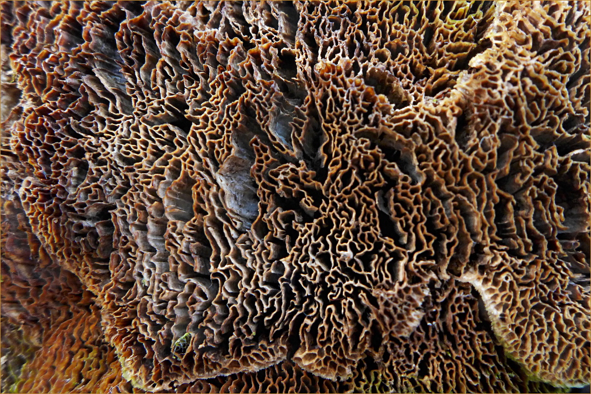 Der größere Abfall in der Schärfe links und rechts in den Randbereichen war aber bewusst so gewählt, denn die Pilze waren nicht plan, sondern leicht gewölbt und in mehreren Ebenen etwas versetzt angeordnet. Auch bei Stackmöglichkeit wäre ich vermutlich nicht auf die Idee gekommen, stacken zu wollen.