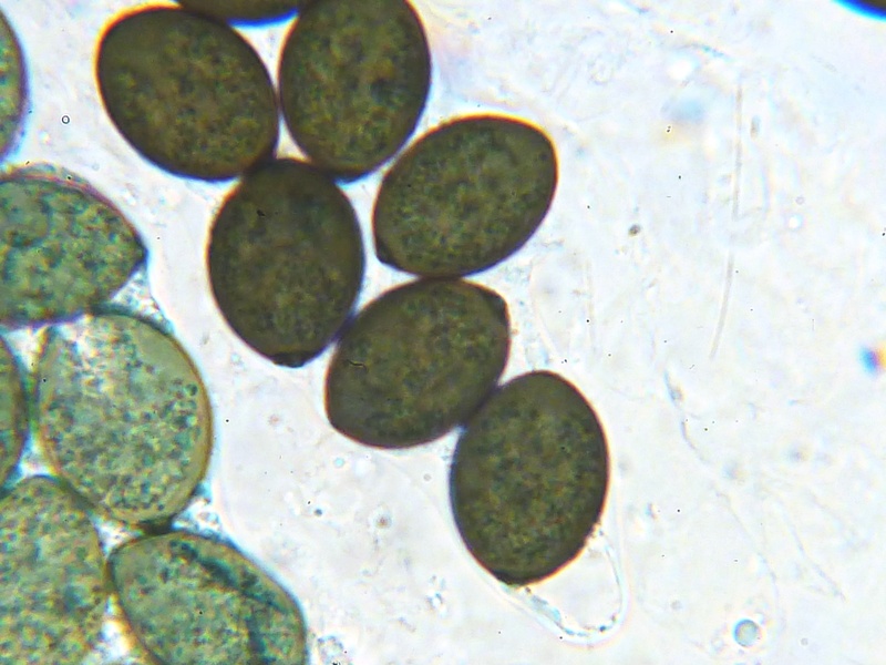 Hier bin ich wirklich am schleudern. Biseriate Asci, Sporenmaße um 23x16 µm, Pedicell lässt sich nur schwer beobachten, ist aber recht lang und dünn. Caudae konnte ich keine finden, muss aber nix heißen da die Sporen kaum aus dem Ascus zu bekommen sind. Squamufolien sehr stark reduziert.