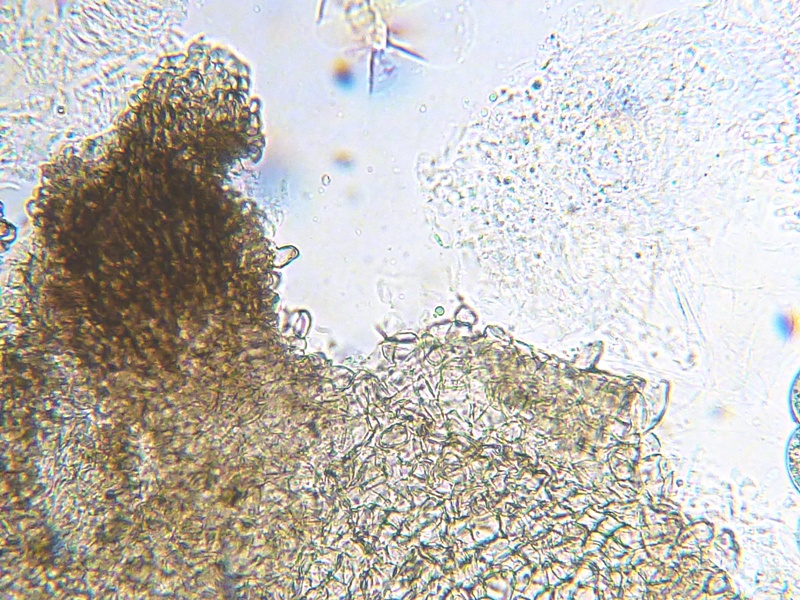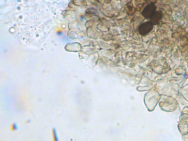 Hier bin ich wirklich am schleudern. Biseriate Asci, Sporenmaße um 23x16 µm, Pedicell lässt sich nur schwer beobachten, ist aber recht lang und dünn. Caudae konnte ich keine finden, muss aber nix heißen da die Sporen kaum aus dem Ascus zu bekommen sind. Squamufolien sehr stark reduziert.