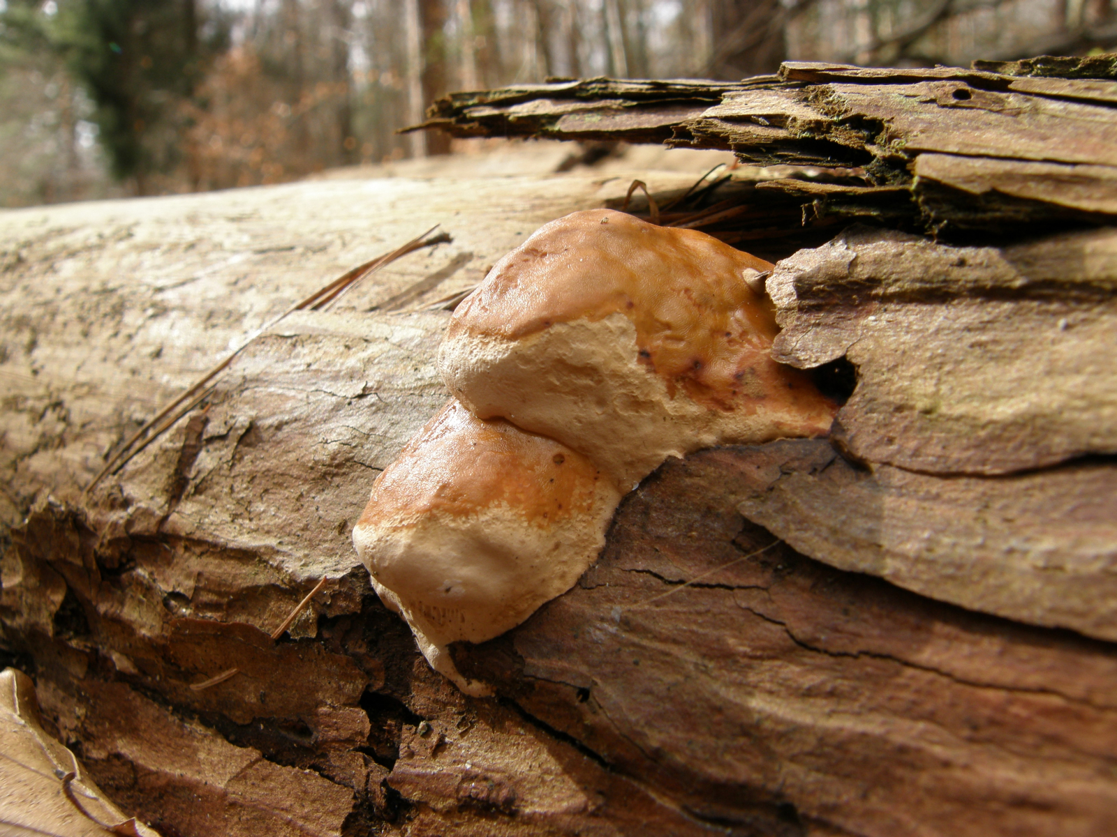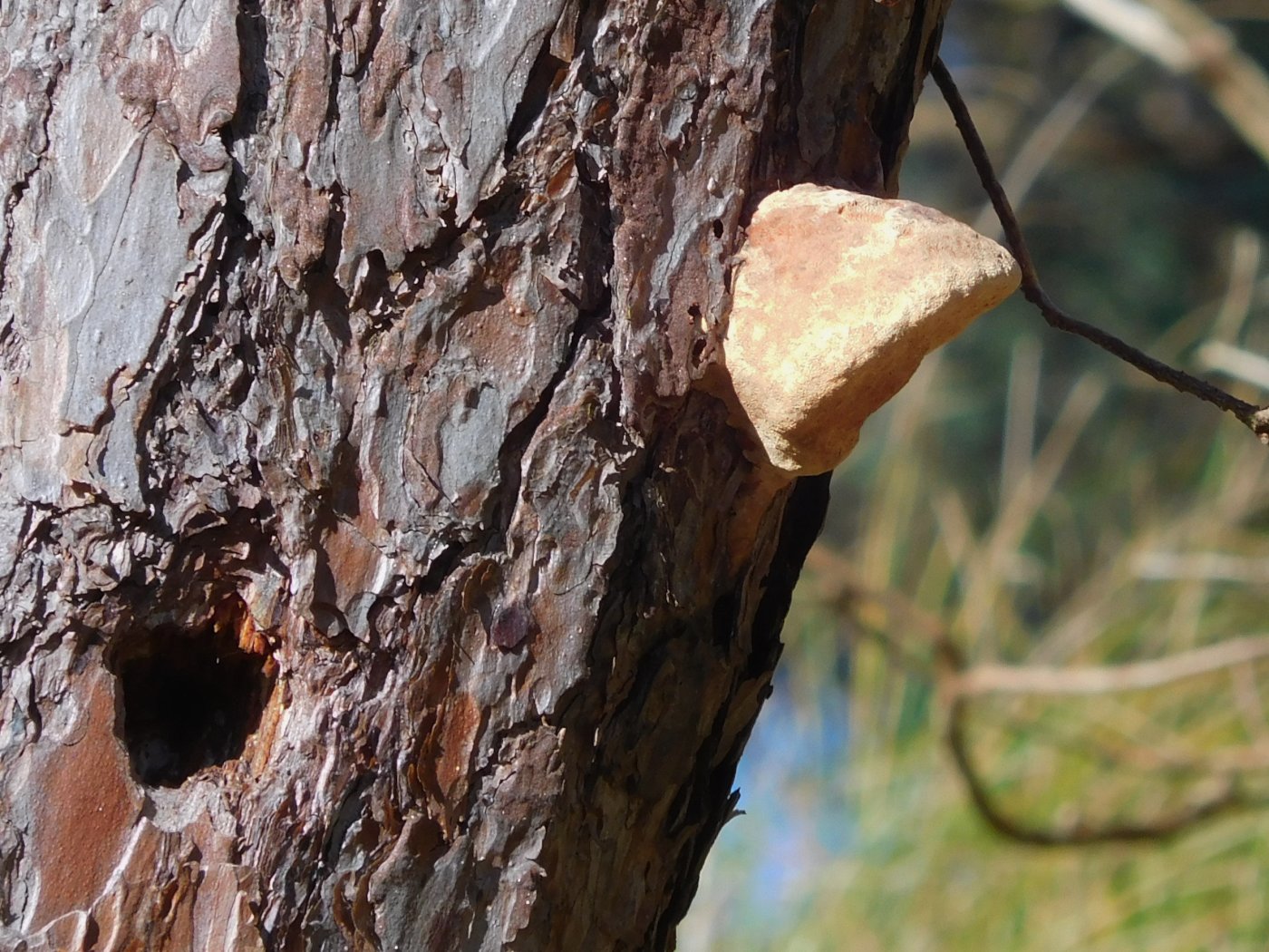 An einer Kiefer an einem Südhang habe ich diesen Porling gefunden. Ein klein wenig größer als das Spechtloch nebenan. Bei uns an Kiefer so ein Porling, das ist fast so, als wenn Weihnachten und Ostern auf einen Tag fallen!