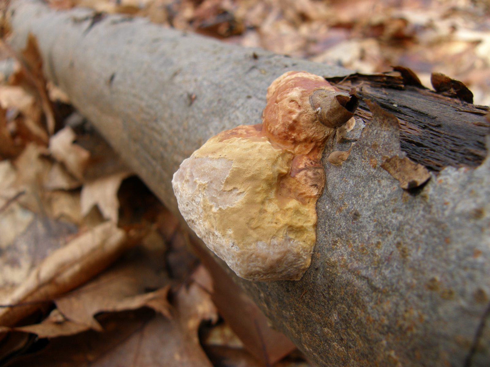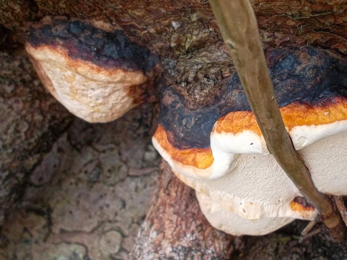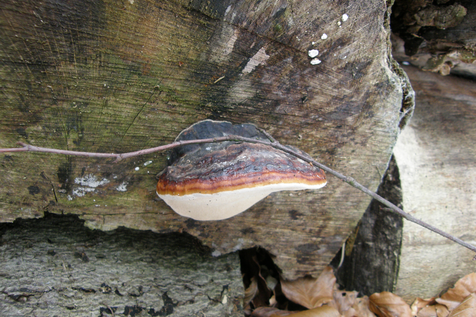 Auch wenn alles nicht so typisch aussieht, denke ich hier fest an einen Rotrandigen Baumschwamm. (Wann findet man eigentlich typische Rotrandige?