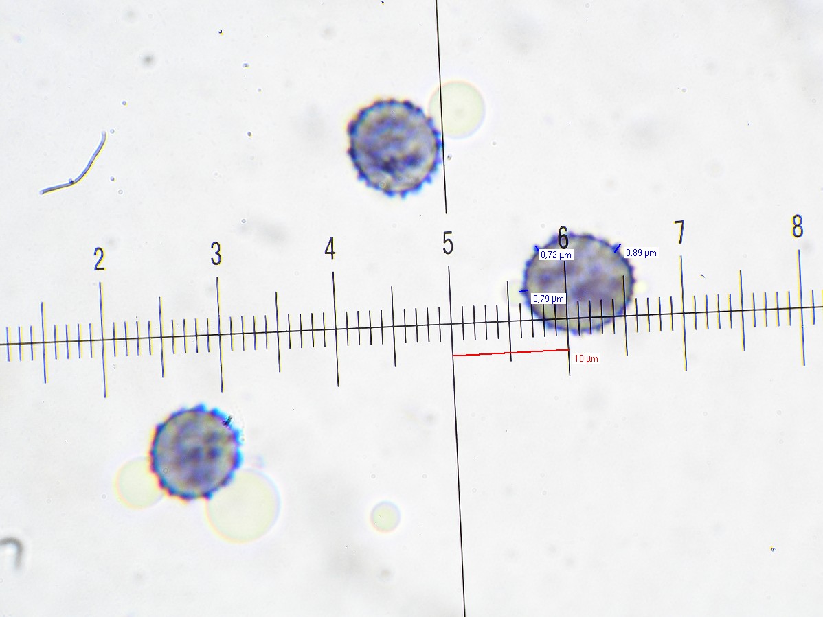 SPOREN: Sporen[95% –• 92 –• SAP –• v –• H2O(nat) ] = (6,5)7 - 8 - 9(9,7) x (5,8)5,9 - 6,7 - 7,4(7,5) µm