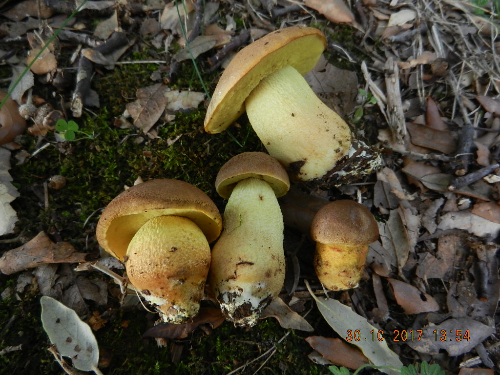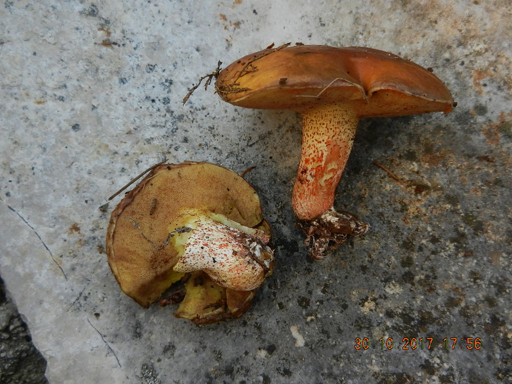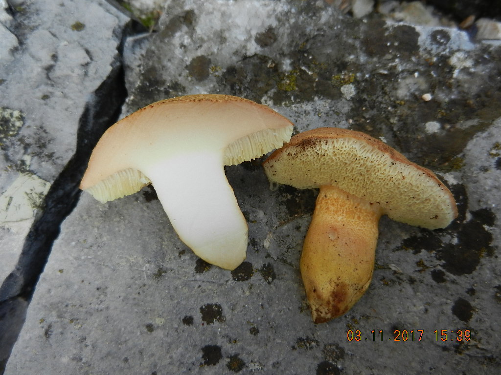 Jetzt noch zu dem häufigsten Röhrling im Eichenwald: Leccinum lepidum (Steineichen-Raufuß), einem Doppelgänger von Leccinum corsicum, welcher freilich unter Zistrose wächst - die gab es an diesem Fundort nicht. Auch sieht der Pilz unserem heimischen Gelbporigen Raufuß (Leccinum crocipodium) ziemlich ähnlich. An diesem Pilz am markantesten ist das starke Röten (!) des Fleisches nach Anschnitt.
