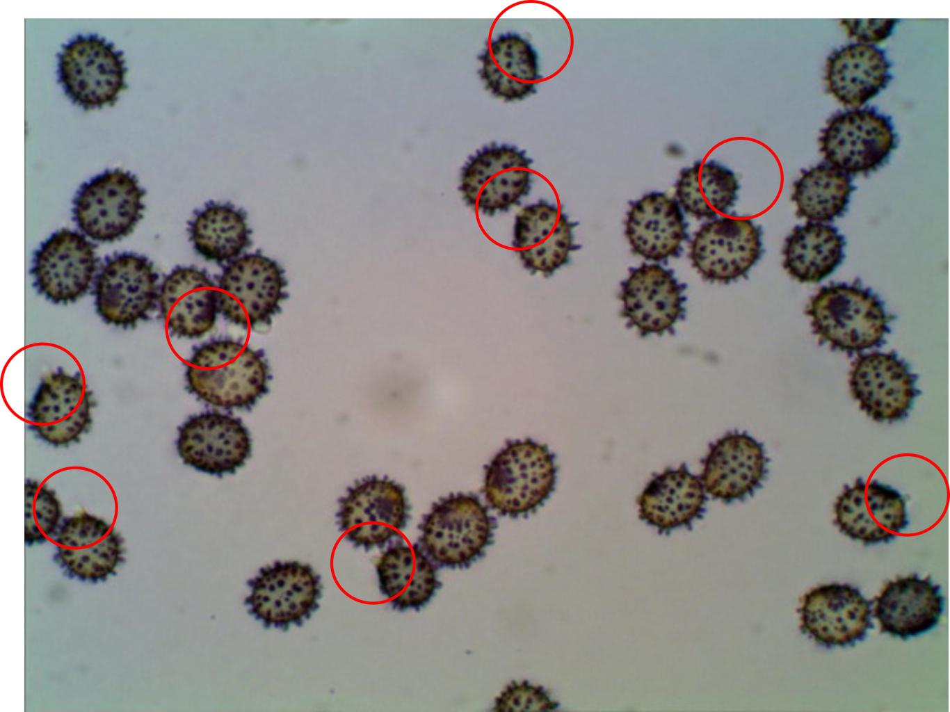 • Am besten misst man Sporen von Abwurfpräparaten, damit man möglichst viele reife Sporen hat. Sporen die optisch schon anders aussehen als der große Rest, lässt man außen vor.