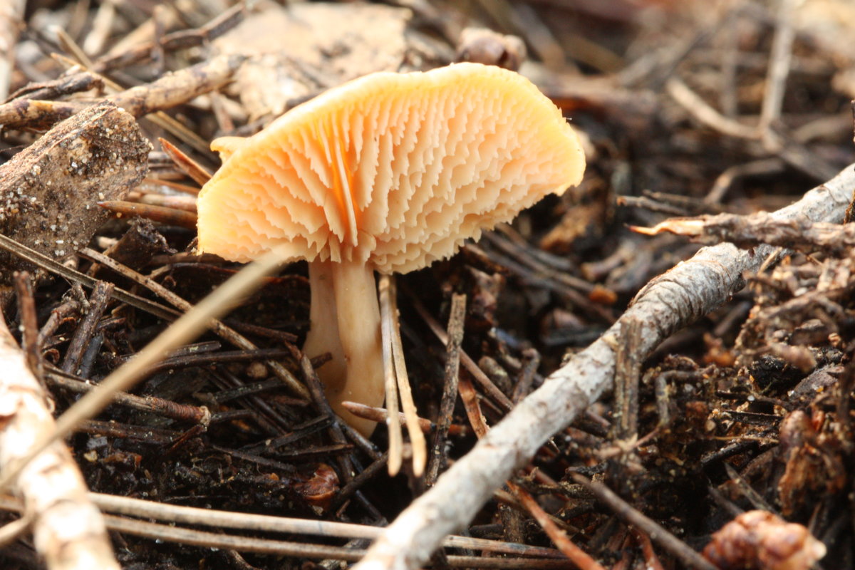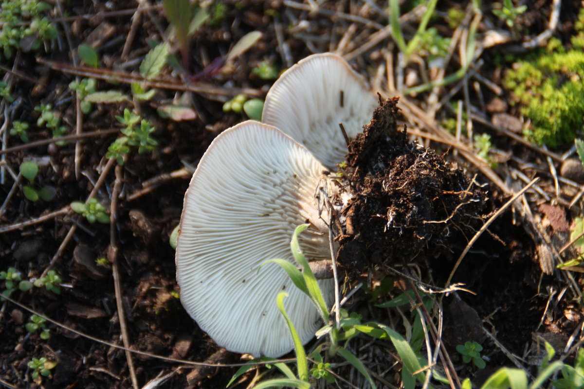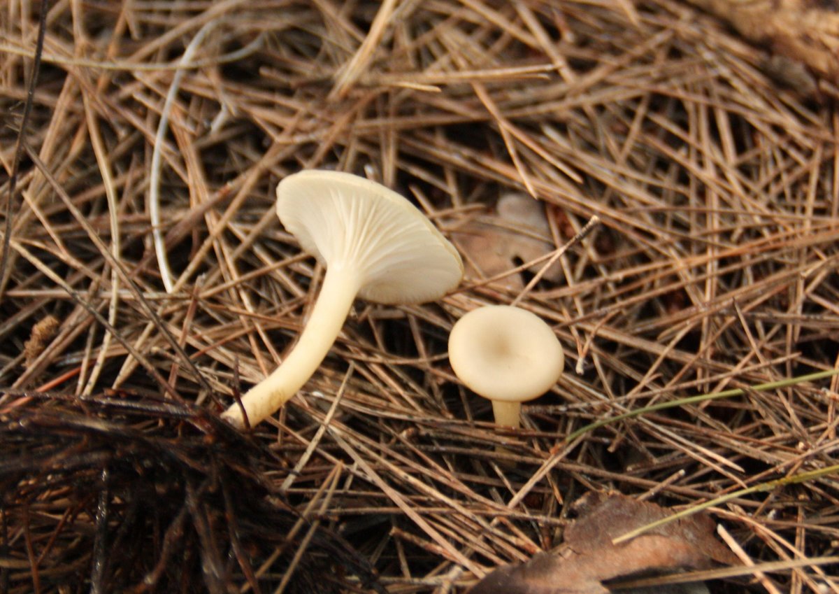 19: Ein kleiner weißer Trichterling mit ranzig-mehligem Geruch, den ich noch nicht wirklich einordnen kann. Junge Exemplare sehen fast aus wie Schnecklinge, ältere mit silbrig-grauem, trockenen Hut.