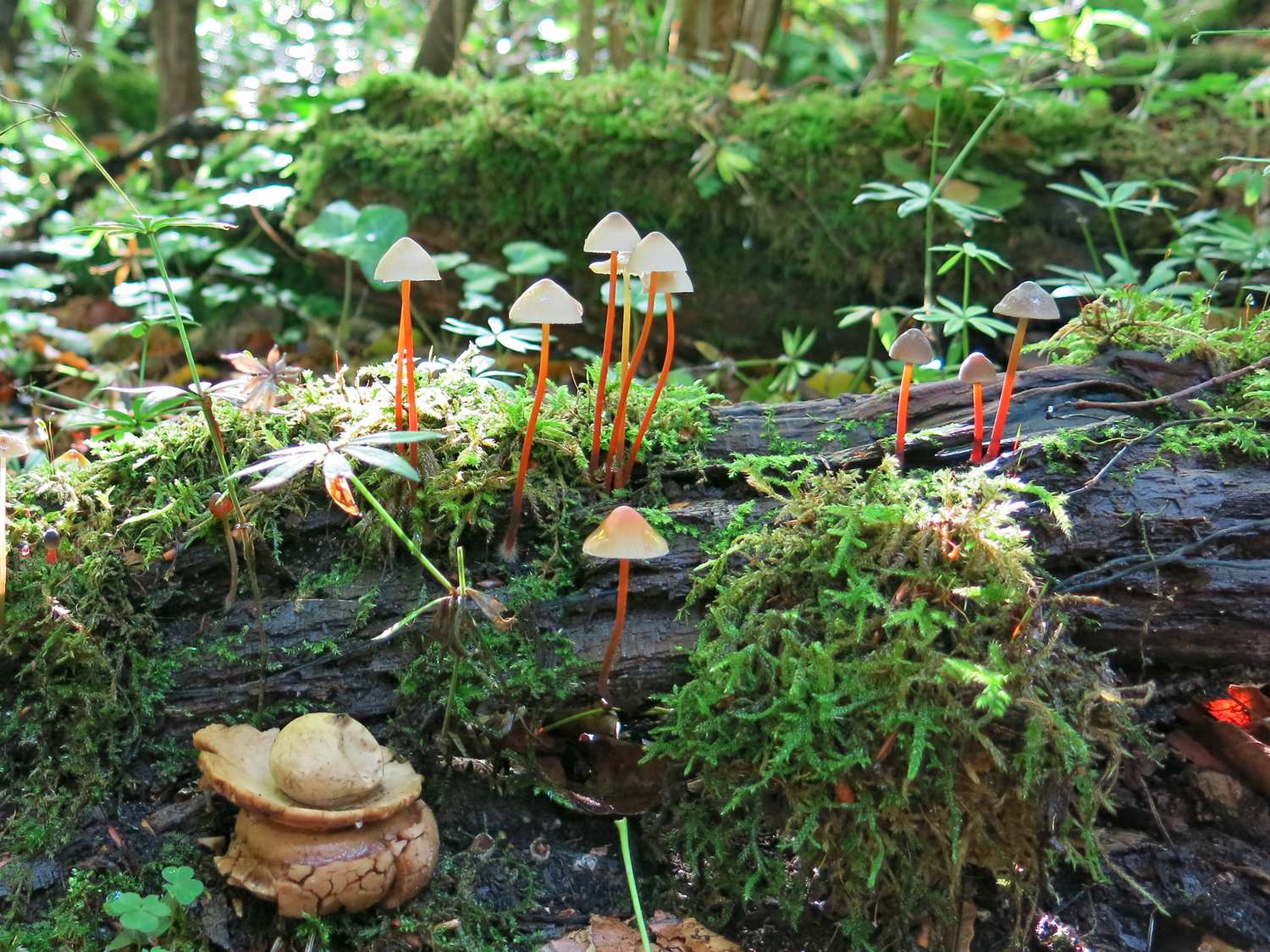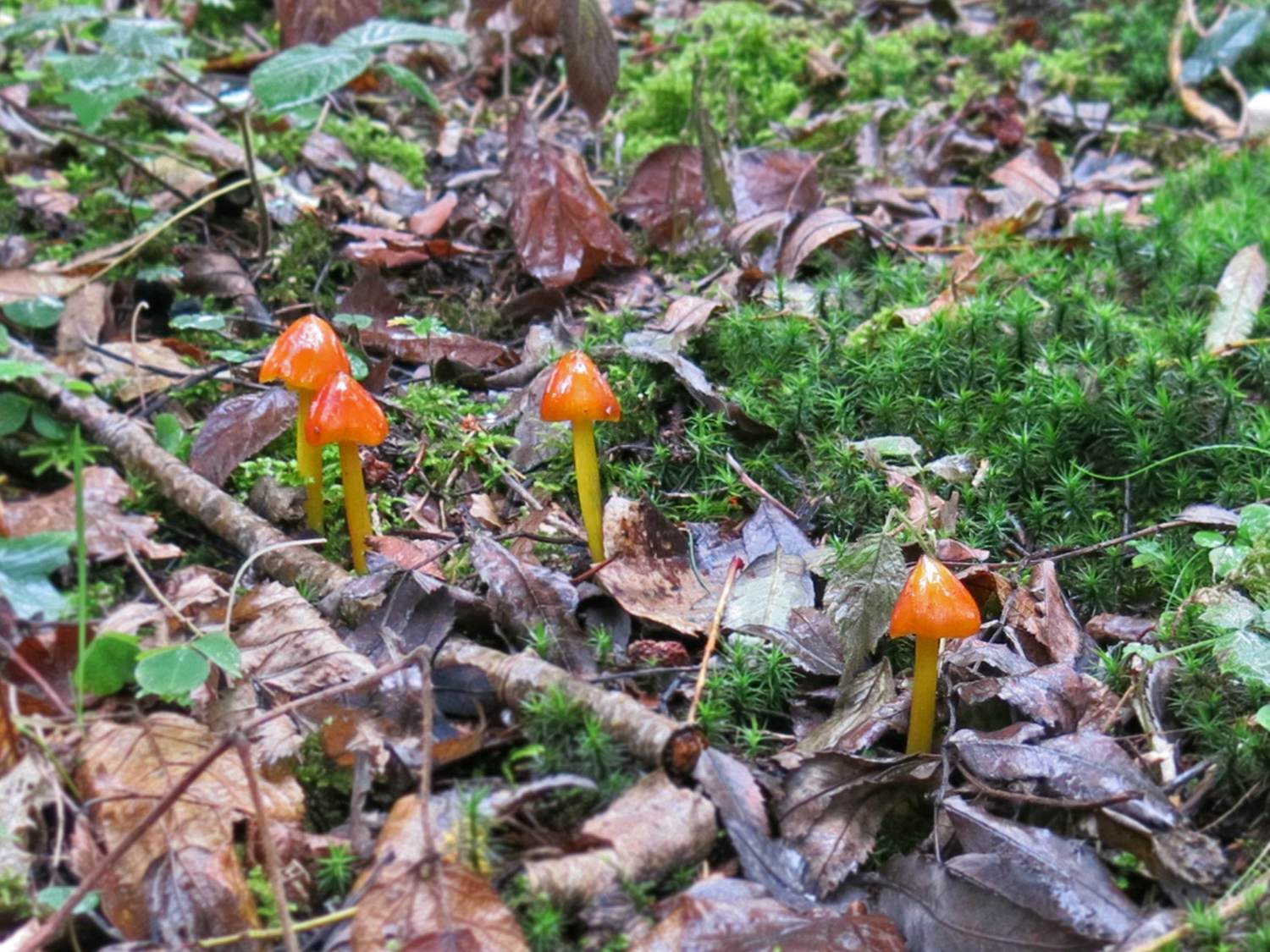 Nummer 3 ist wohl der Gelborangemilchende Helmling (Mycena crocata).