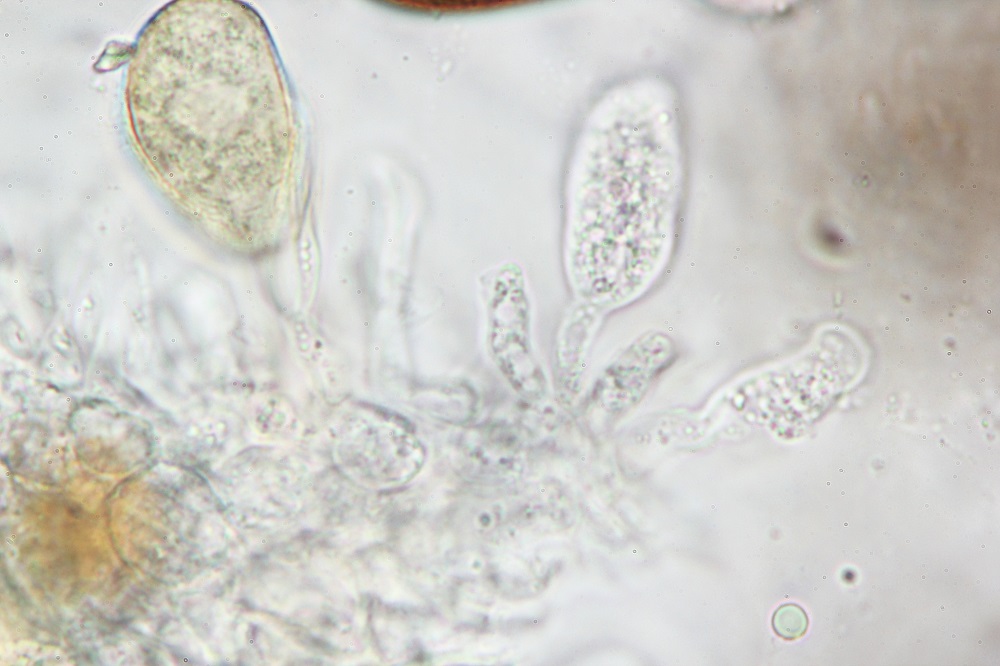 Dass deine Konidien ornamentiert sind, ist interessant, da sie ja eigentlich laut Literatur glatt sein sollten. Das hat mich dann eben stutzig gemacht. Ob es feine Pünktchen oder Grübchen sind, ist für mich lichtoptisch nicht einfach zu entscheiden, da das recht klein ist und die Sporen gefärbt und mit körneligem Inhalt sind.