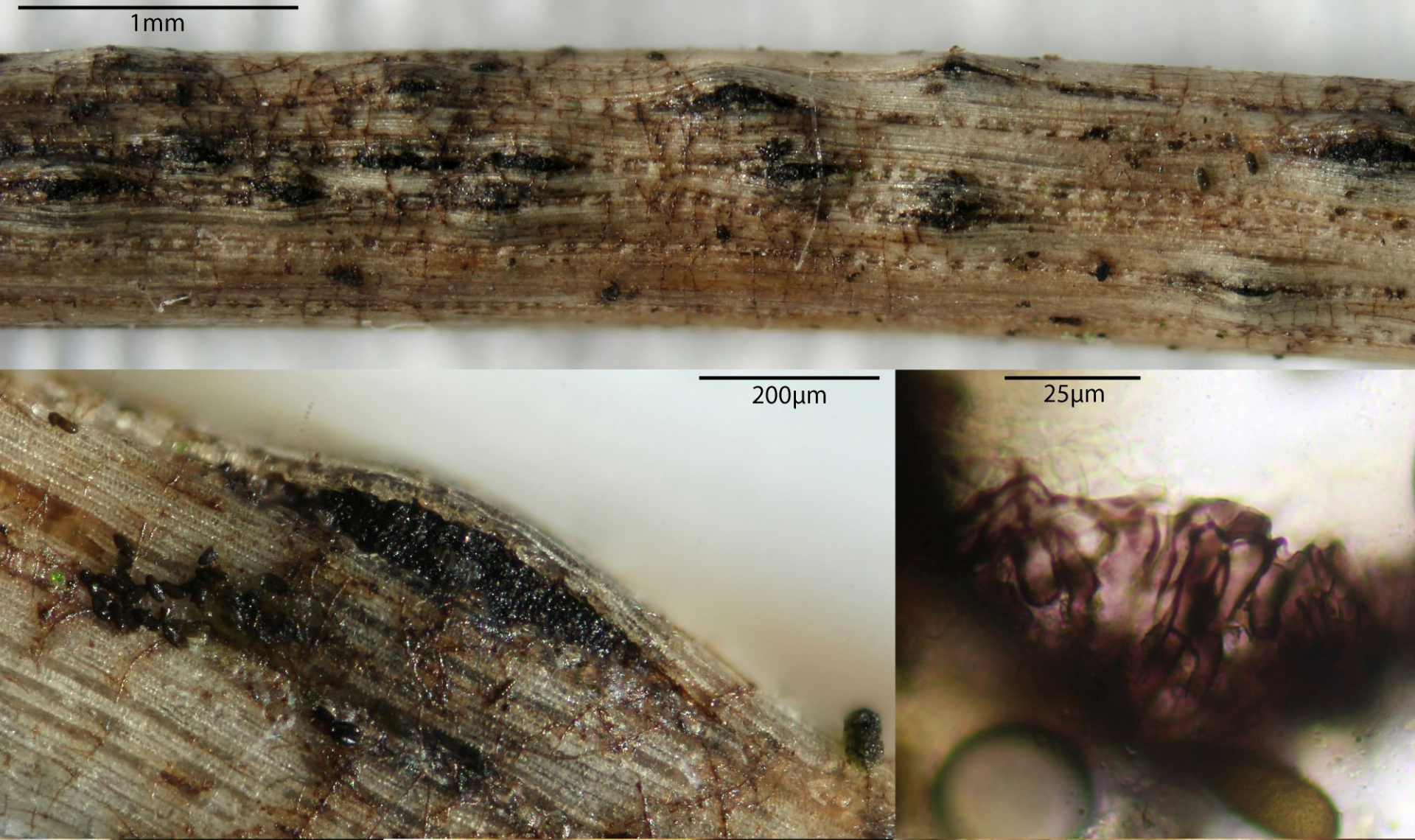 Wenn deine Konidien bis 2-Fach septiert sind und rotbraun, dann würde ich zu Diplodia scrobiculata tendieren.