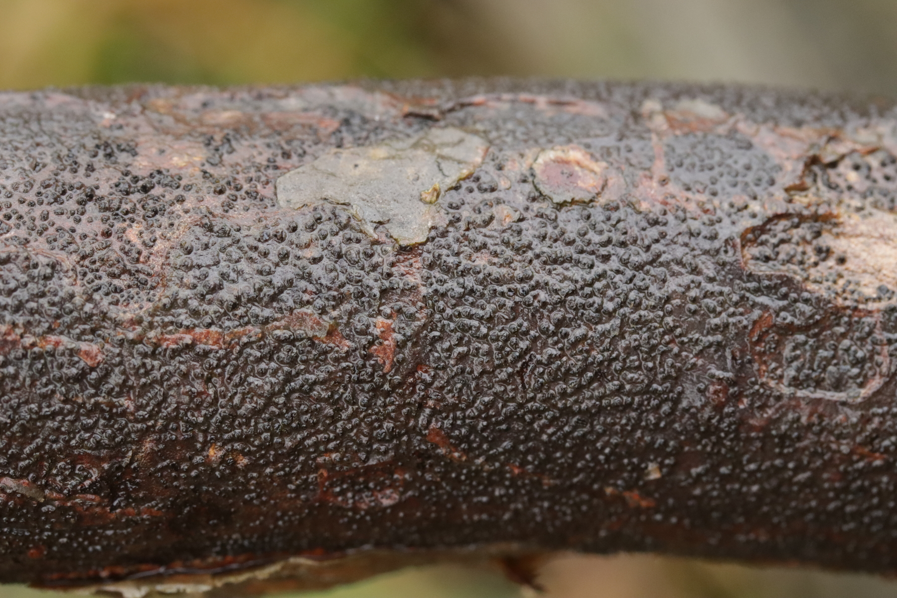 Ich lasse es jetzt bei Diplodia sapinea, da die konidiogenen Zellen farblos hyalin sind - um die Art belastbar zu bestimmen, müsste ich sie kultivieren, wofür mir die Kapazitäten fehlen. Leider habe ich kein Labor mit Sterilbank. Falls jemand die Mögliochkeit haben sollte - es geht eigentlich recht einfach, zumal der Pilz gut wächst. Vielleicht hat jemand Lust, sich da mal zu verlustieren...