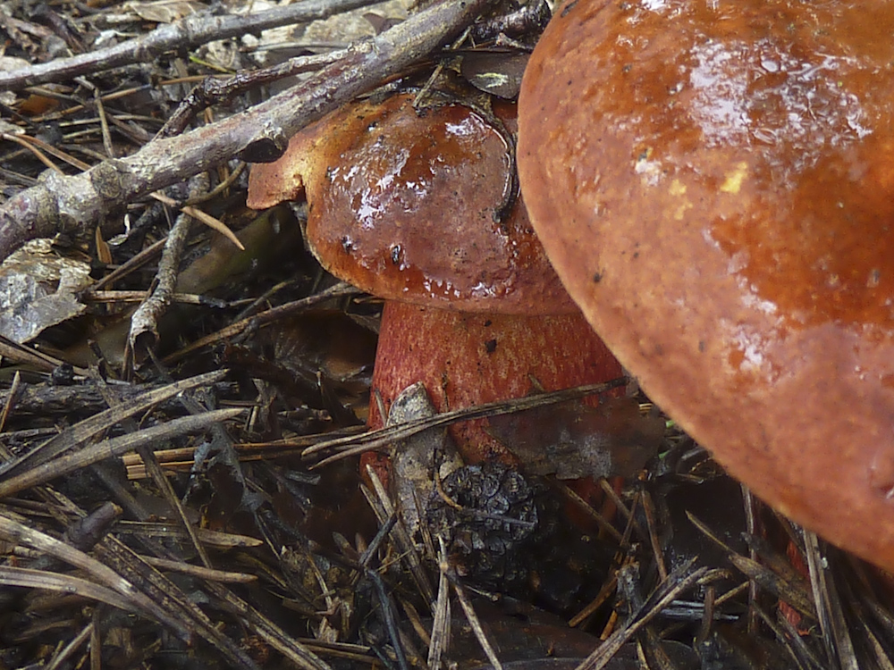 Zum ersten Mal habe ich so bewusst die dunkle Variante davon wahrgenommen, die genauso wie eine Ziegenlippe aussieht, jedoch einen dunkelbraunen bis rotbraunen Hut hat.