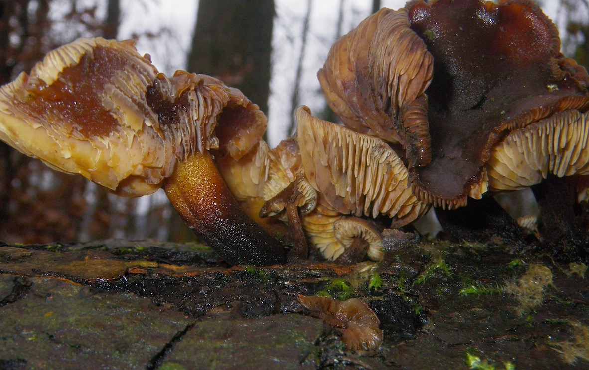 Sind das sehr alte grosse Samtfussrüblinge? Fundort Hägglingen 550m auf Totholz Der Stiel und die Hutfarbe würden doch passen! mfg Adi Meyer