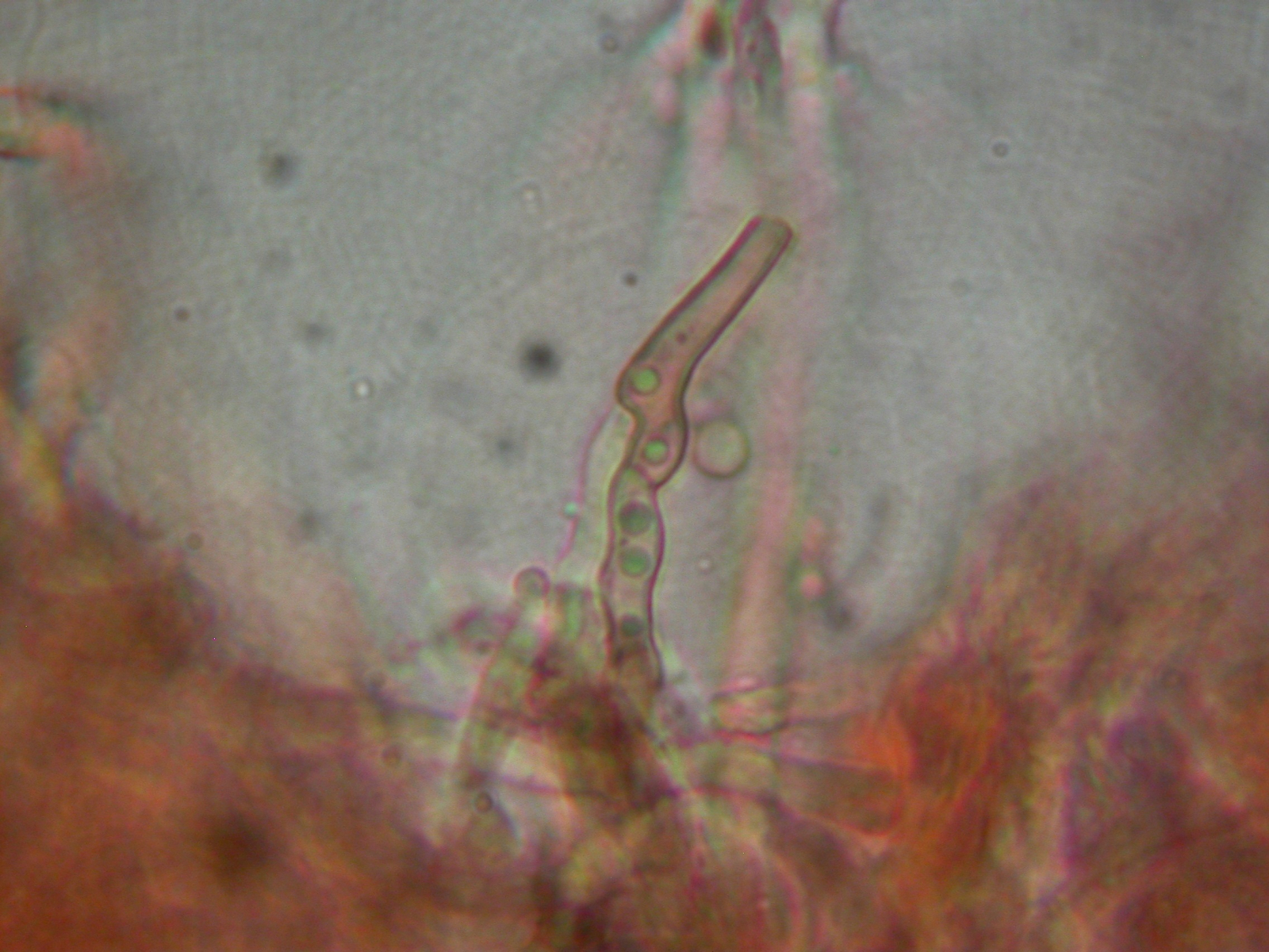 11. Eventuell sogar eine Skeletthyphe, aber aufgrund der Konsistenz des Pilzes eher unwahrscheinlich.