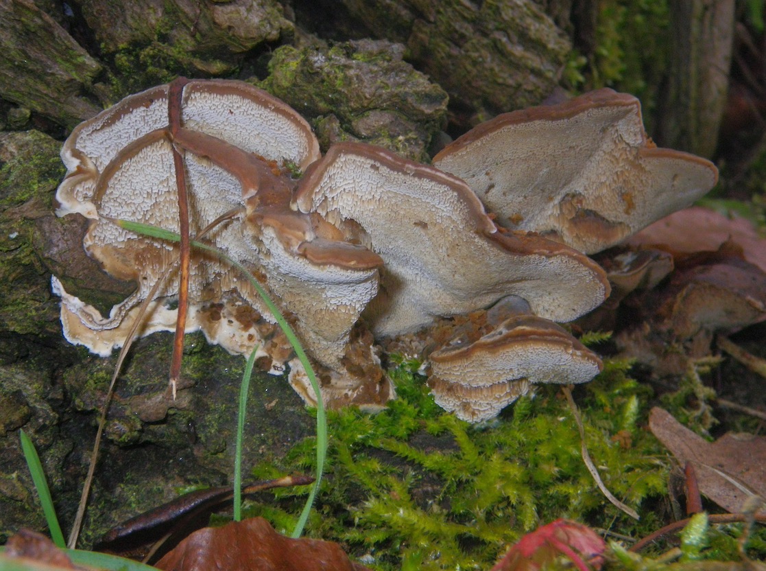 Das sehe ich auch so. Bei der Striegeligen Tramete habe ich aber noch größere Zweifel. Tramete ist richtig, aber eine andere, helle, ockerfarbene. Auch wenn striegelige Trameten alt sind, ist die Oberfläche immer noch etwas striegelig. Einfach mit den Fingern herüberstreichen. Das muß sich wie ein altes "Plüschsofa" anfassen.