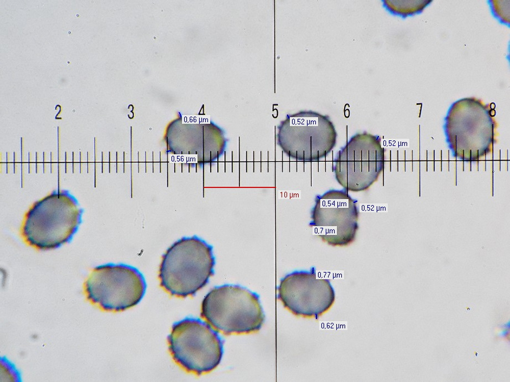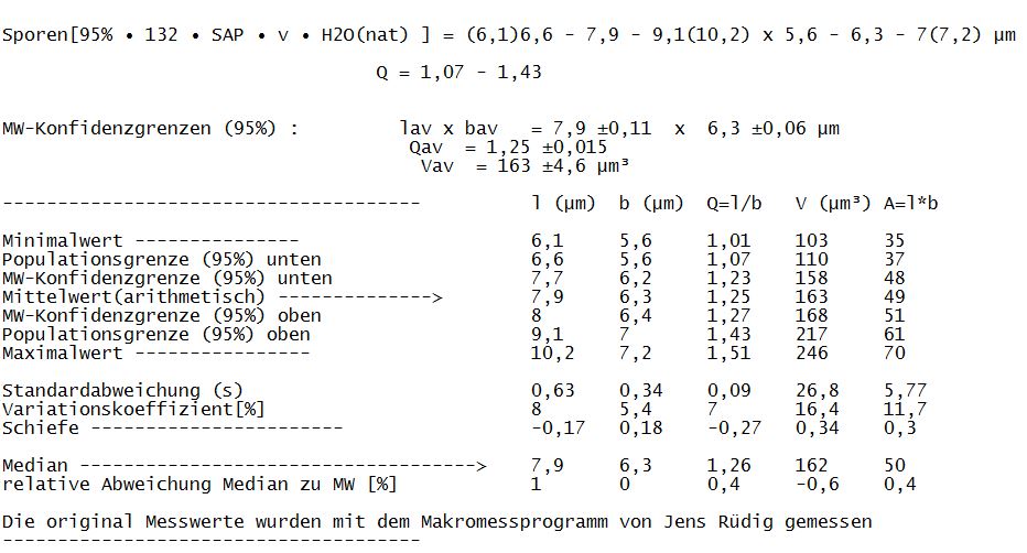 SPOREN: Sporen[95% –• 132 –• SAP –• v –• H2O(nat) ] = (6,1)6,6 - 7,9 - 9,1(10,2) x 5,6 - 6,3 - 7(7,2) µm