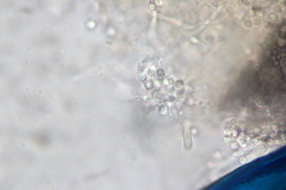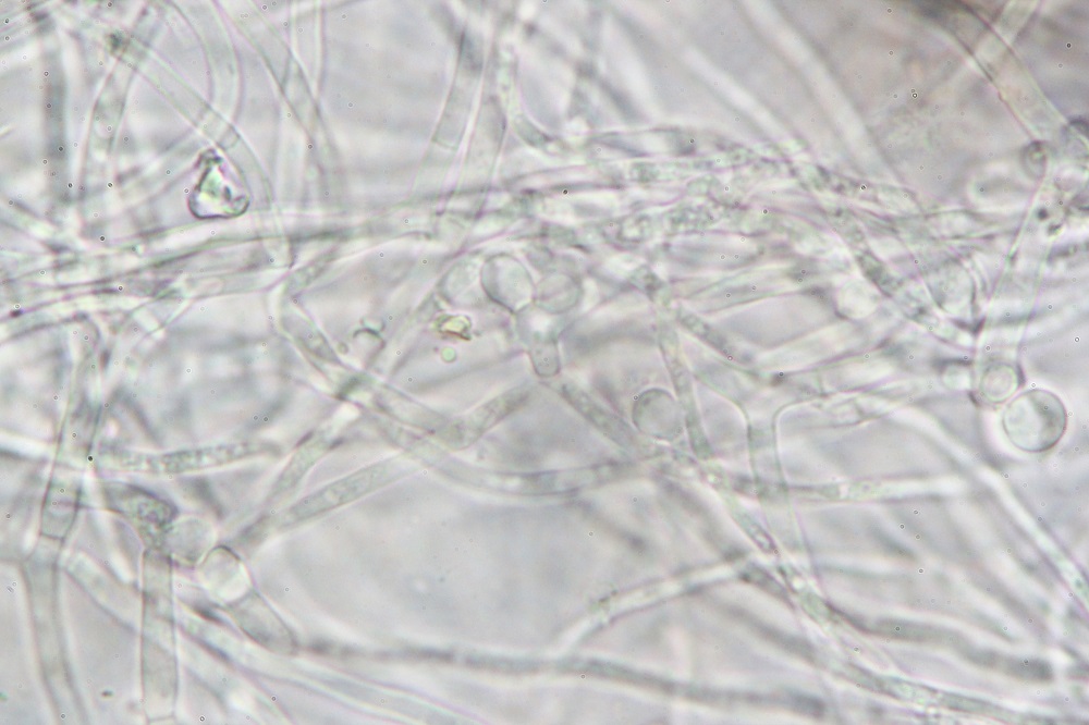 3. Zuerst sieht man Hyphen mit kleinen runden Zellen