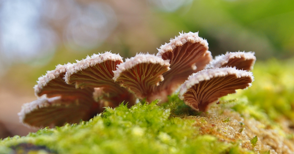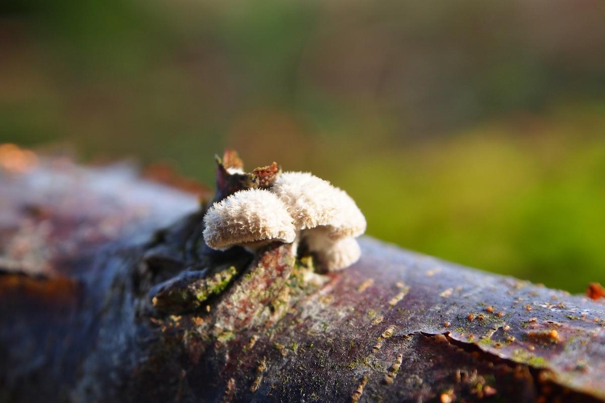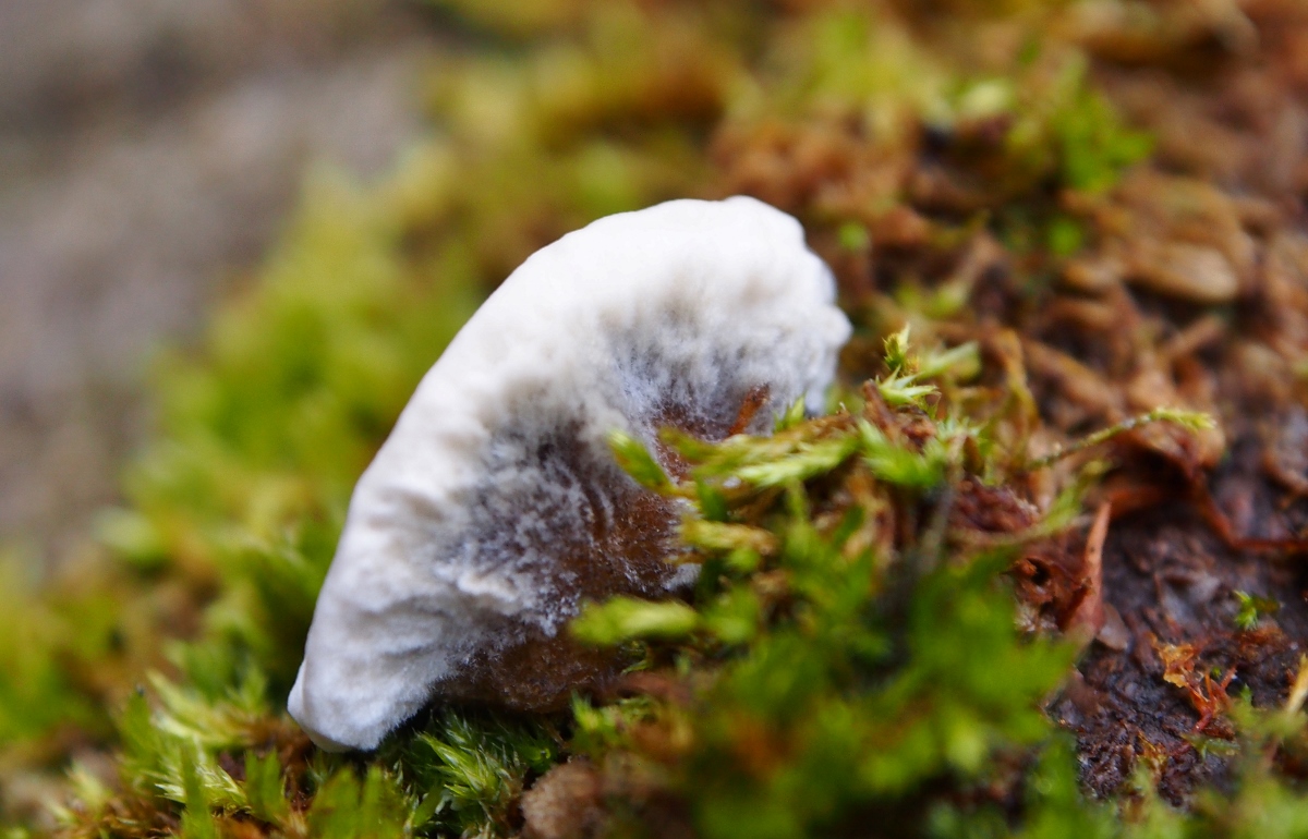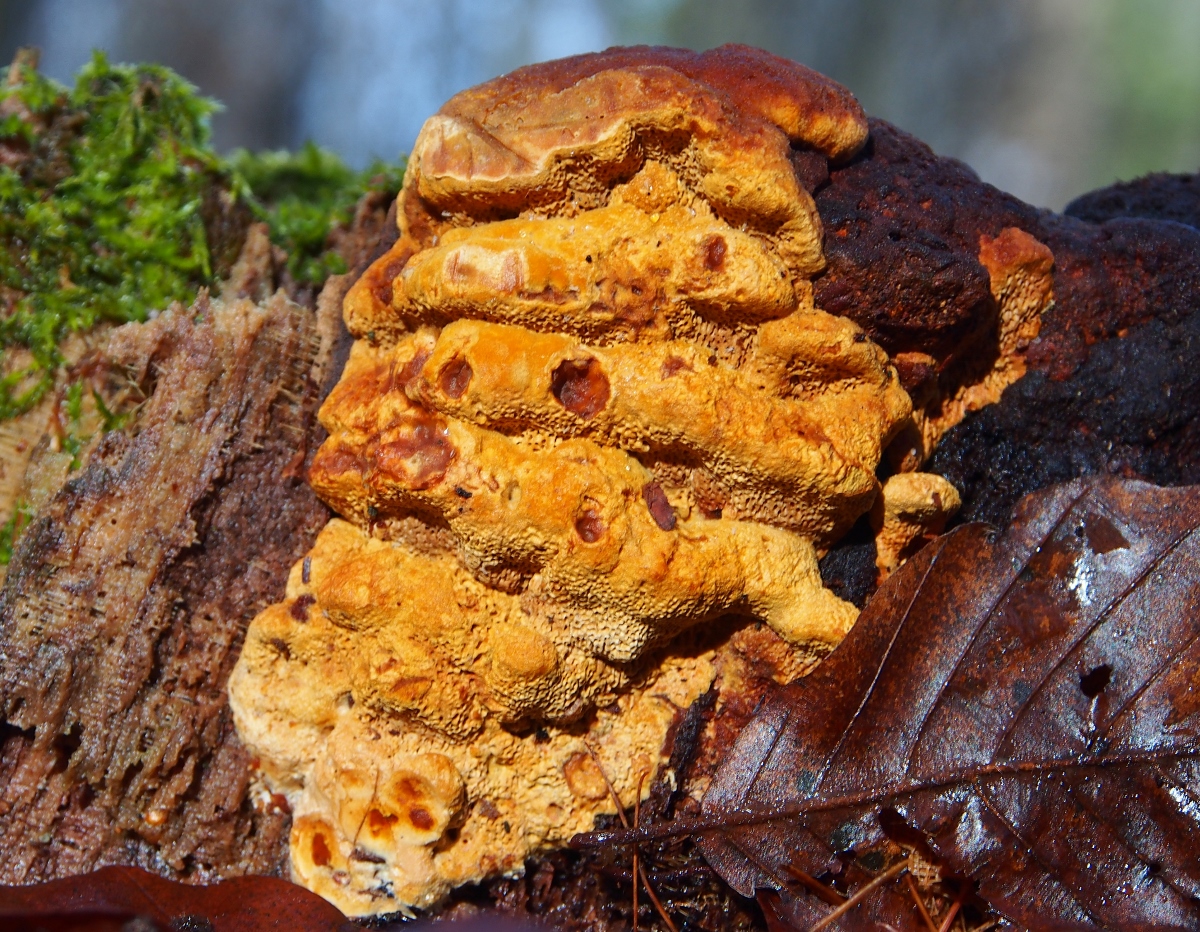 7. Hier ein sonniger Farbtupfer: Striegeliger Schichtpilz (Stereum hirsutum)