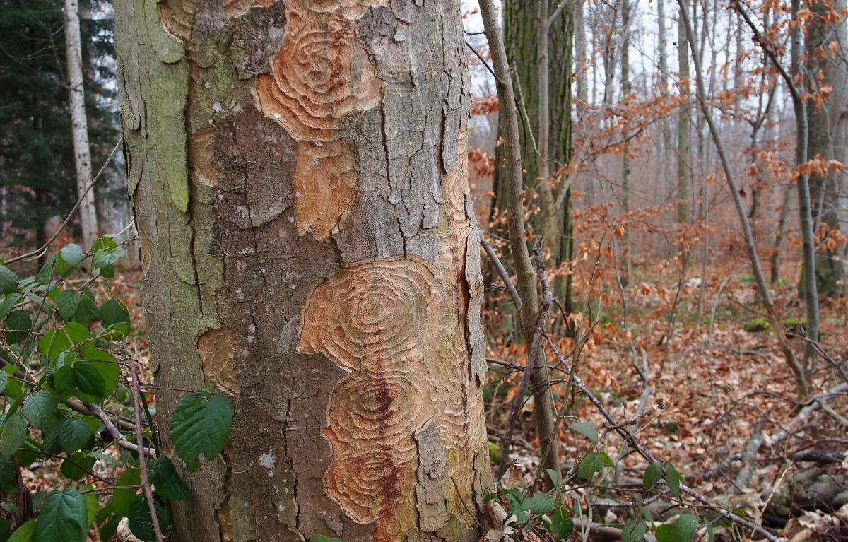 10. Weiß jemand, was für ein Käfer oder Larve diesen Schaden verursacht? Die Muster des Borkenkäfers sind anders.