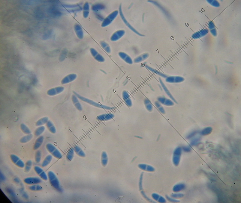 Sporengröße:25-32 x3 µ / 0-3x septiert, gebogen- abgeknickt.