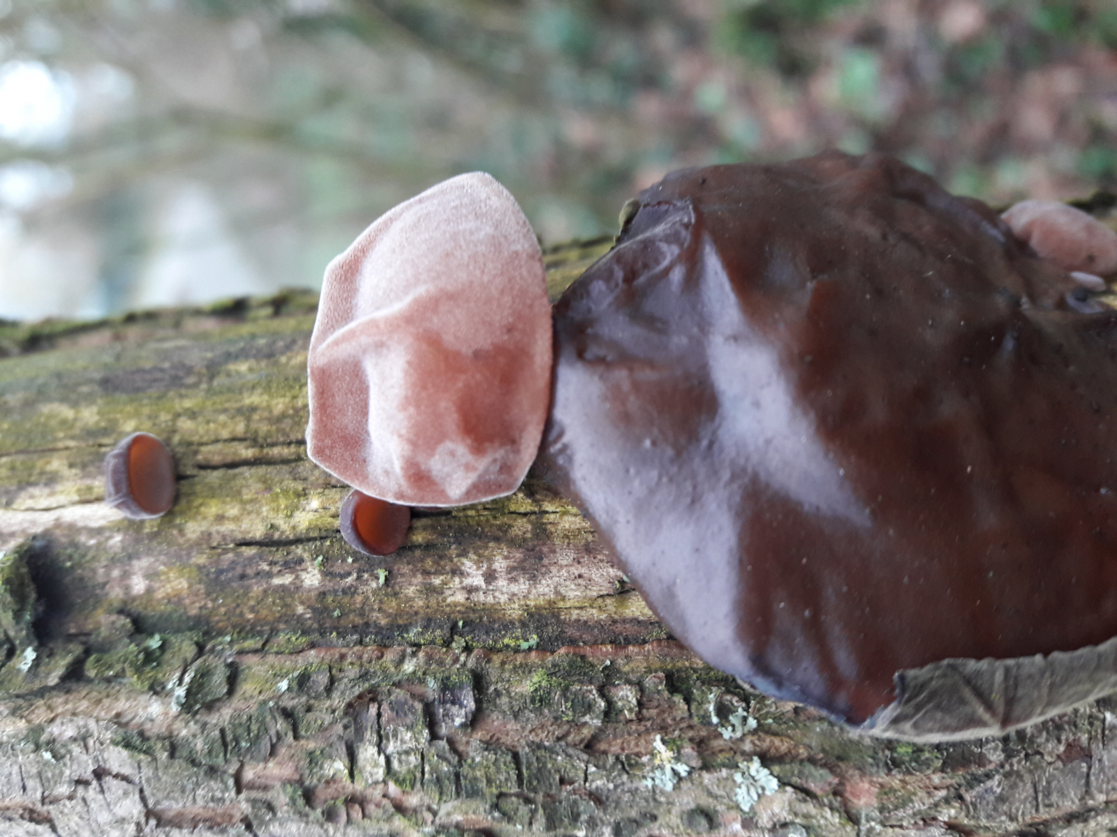 heute war es endlich soweit: ich habe meine ersten Holunderschwämme (Auricularia auricula-judae) gefunden. Von einer Pilzexkursion mit einer Gruppe war mir der Pilz zwar schon mal live begegnet (und natürlich getrocknet aus dem Chinaladen), aber selber gefunden hatte ich den bislang noch nie. Nach gefühlt hunderten von Holunderbüschen, die ich in den letzten Jahren nach dem Pilz gescannt habe, lief er mir heute einfach so über den Weg ![]()
