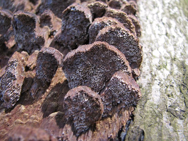 hier tappe ich völlig im Dunkeln, etwas Passendes habe ich nicht gefunden. Diesen Baumpilz habe ich auf einer durch Friederike gefällten, schon vorher abgestorbenen Rotbuche gefunden, der dort auf der Rinde ein größeres Areal besiedelte. Weiß jemand was Genaueres?
