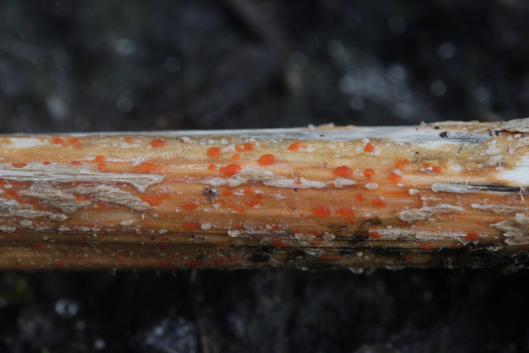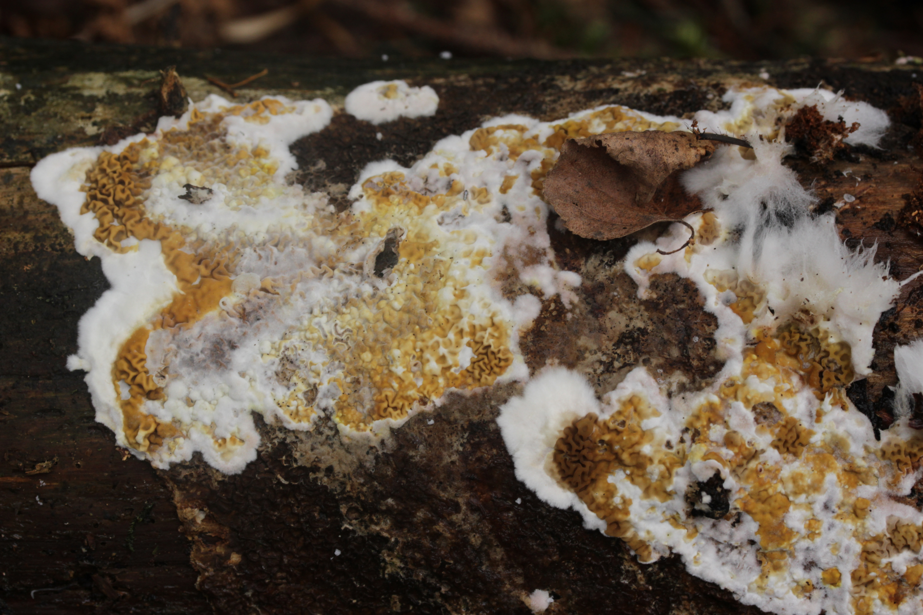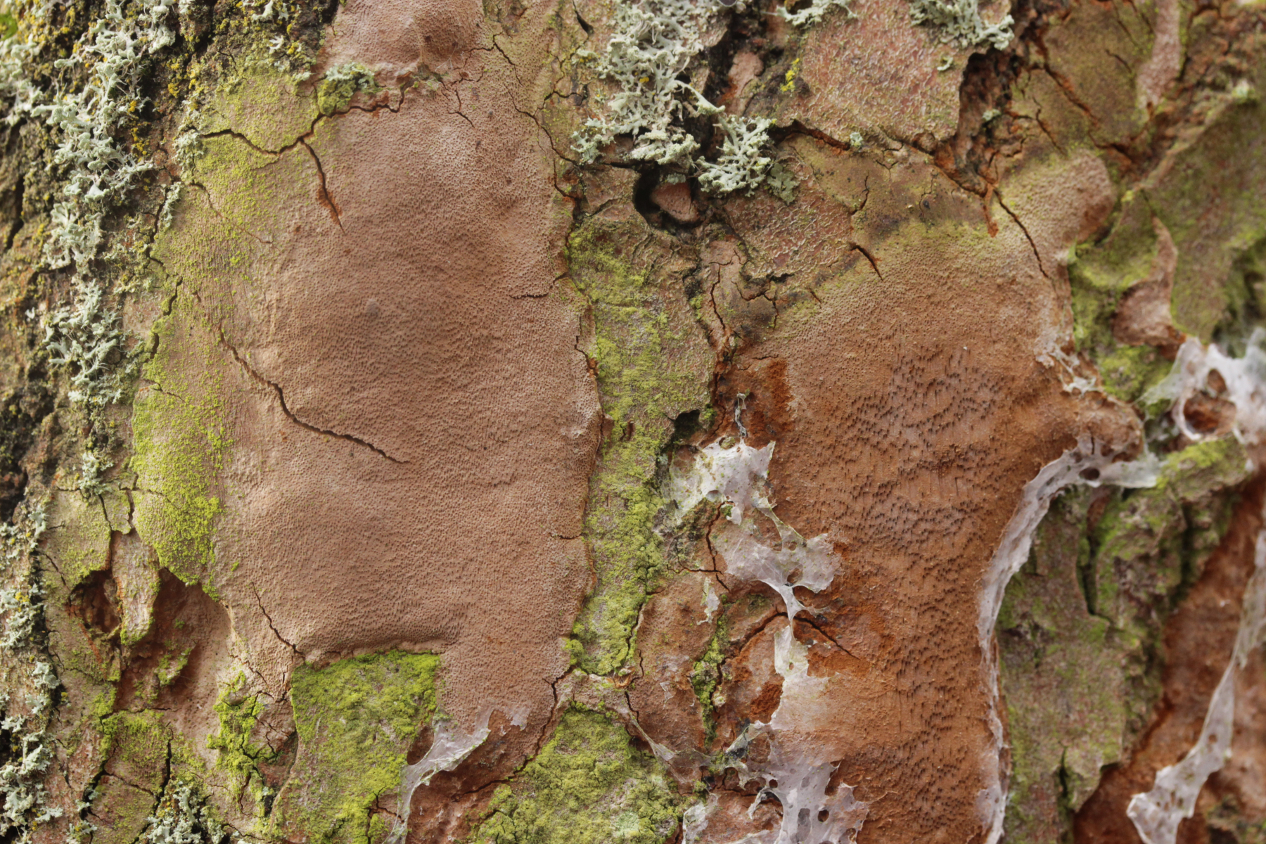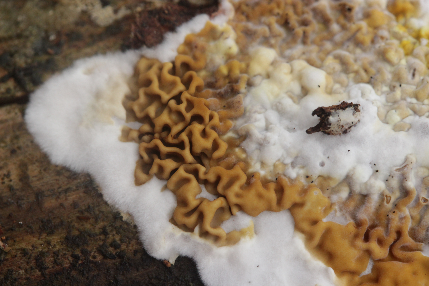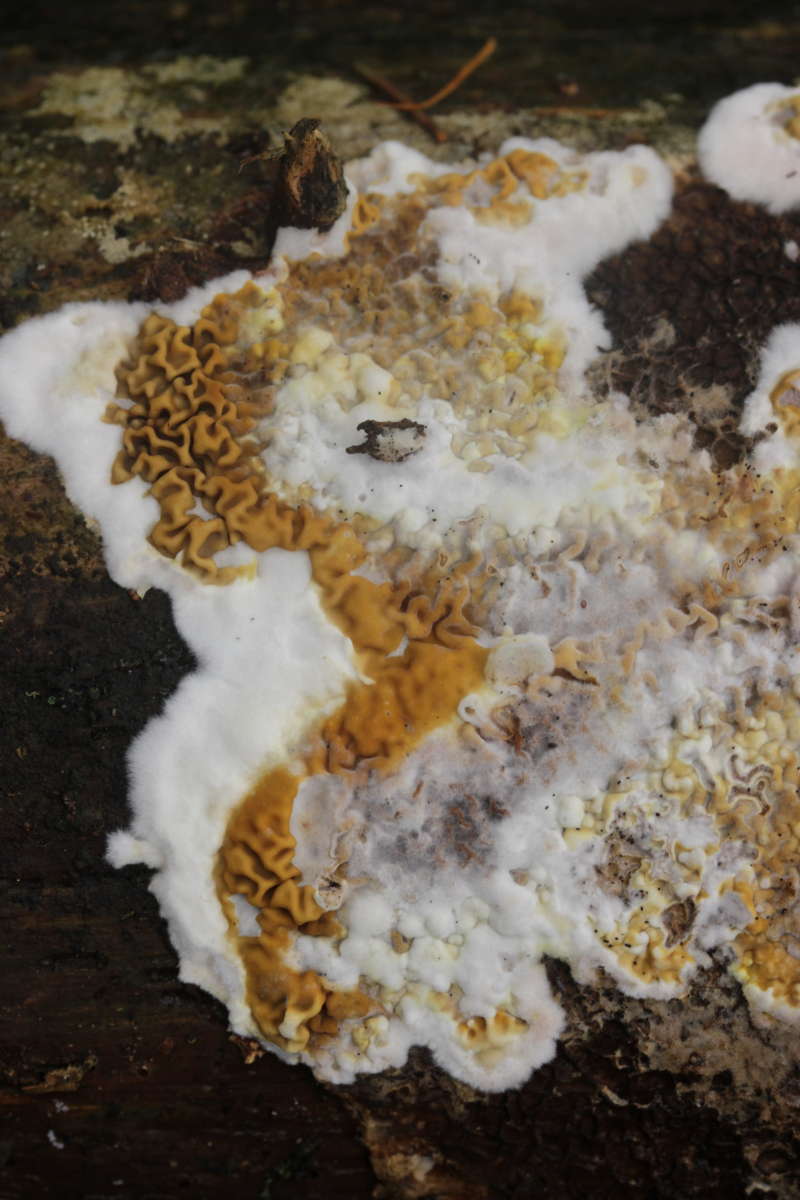 Ach, na klar! Dacryobolus karstenii, hätte ich auch dran denken können (hab' ich aber nicht). Nur gut, daß da niemand gegen gewettet hat.