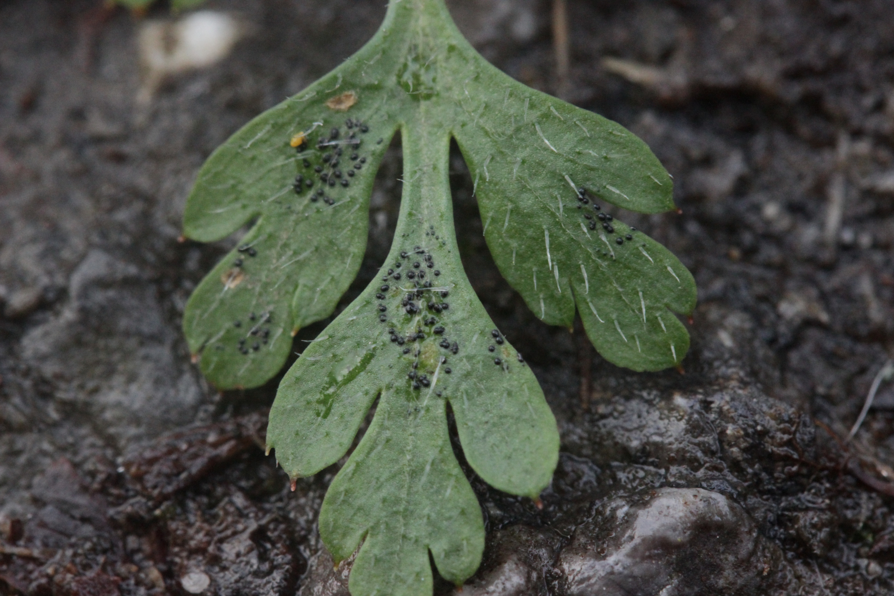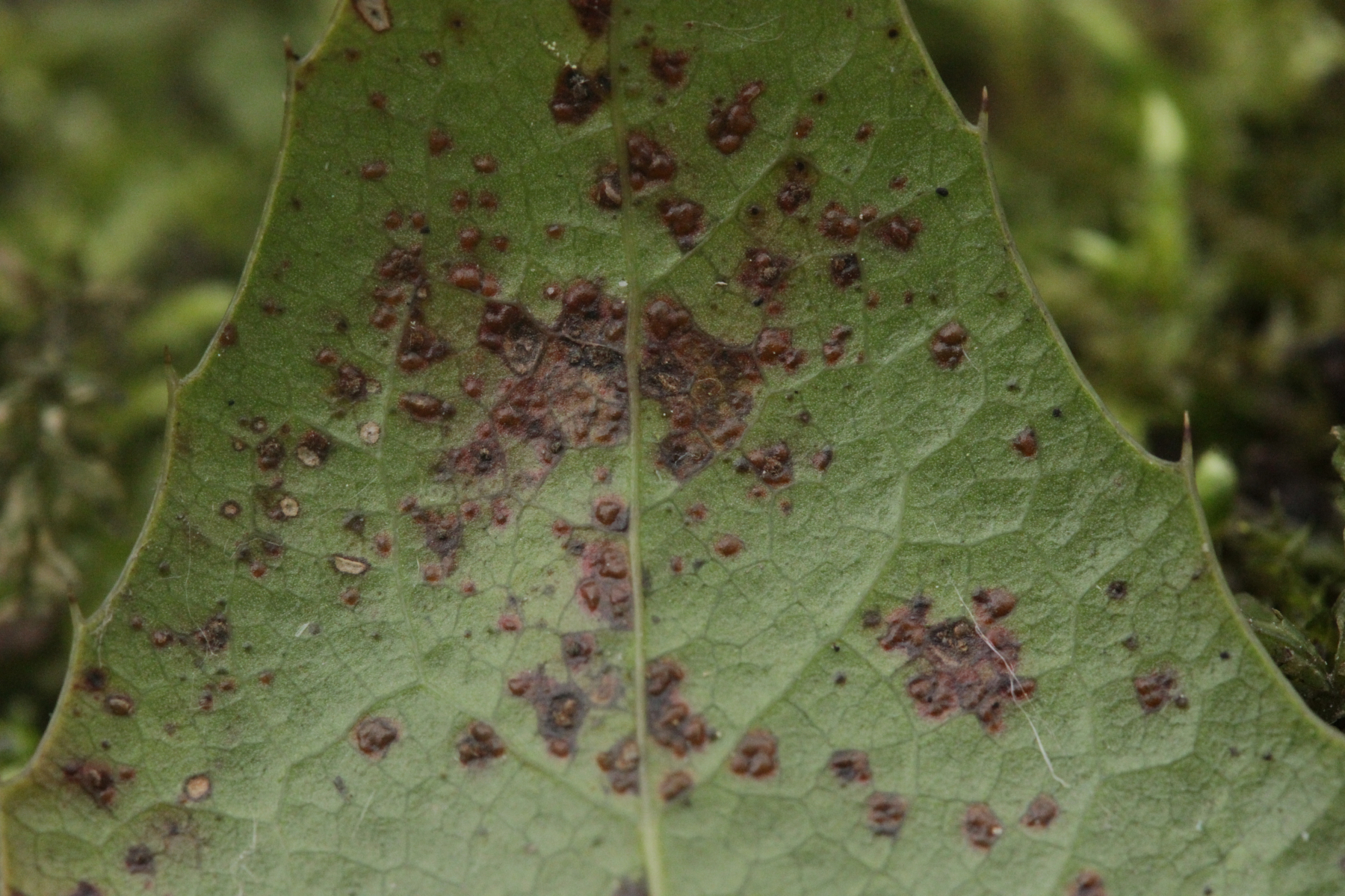 Was die Sporenmaße angeht: Ich hab die Fotos bei 320facher Vergrößerung gemacht. Wenn ich das dann mal mit meinen Fotos von Teliosporen von P. violaceum vergleiche (die sind 30-40 µm breit), dann kommt das mit einer Länge von 40 µm schon ungefähr hin. Wenn ich mit den verlinkten Sporen vergleiche, sieht das für mich auf den ersten Blick auch erstmal relativ ähnlich aus. Aber wie ich gerade schon bei Facebook geschrieben habe: Bleibt wohl ein namenloser Gruß aus der Anamorphenhölle ;)