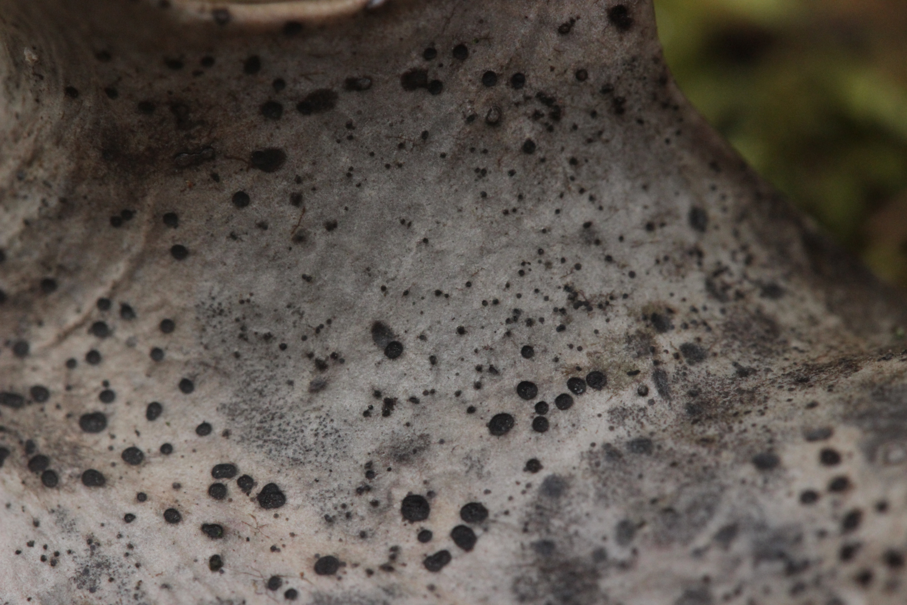 gerade bei solch unbekannten Pilzen wird es Zeit für ein Messokular, fürchte ich. Und auch bei schwarzen Punkten schaden Makrobilder nicht, wie unbedeutend die Punkte auch aussehen mögen. Man kann immer noch Größe und Form besser einschätzen.