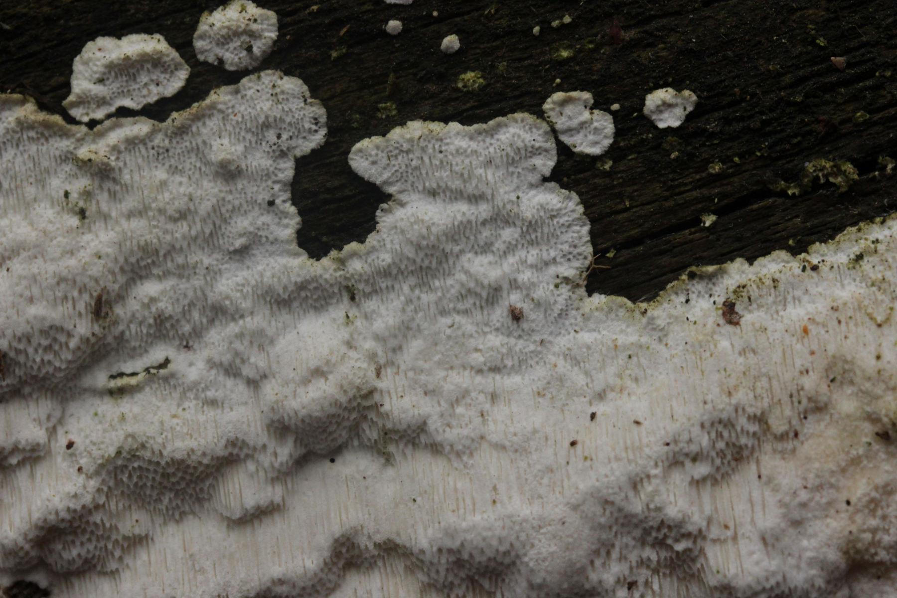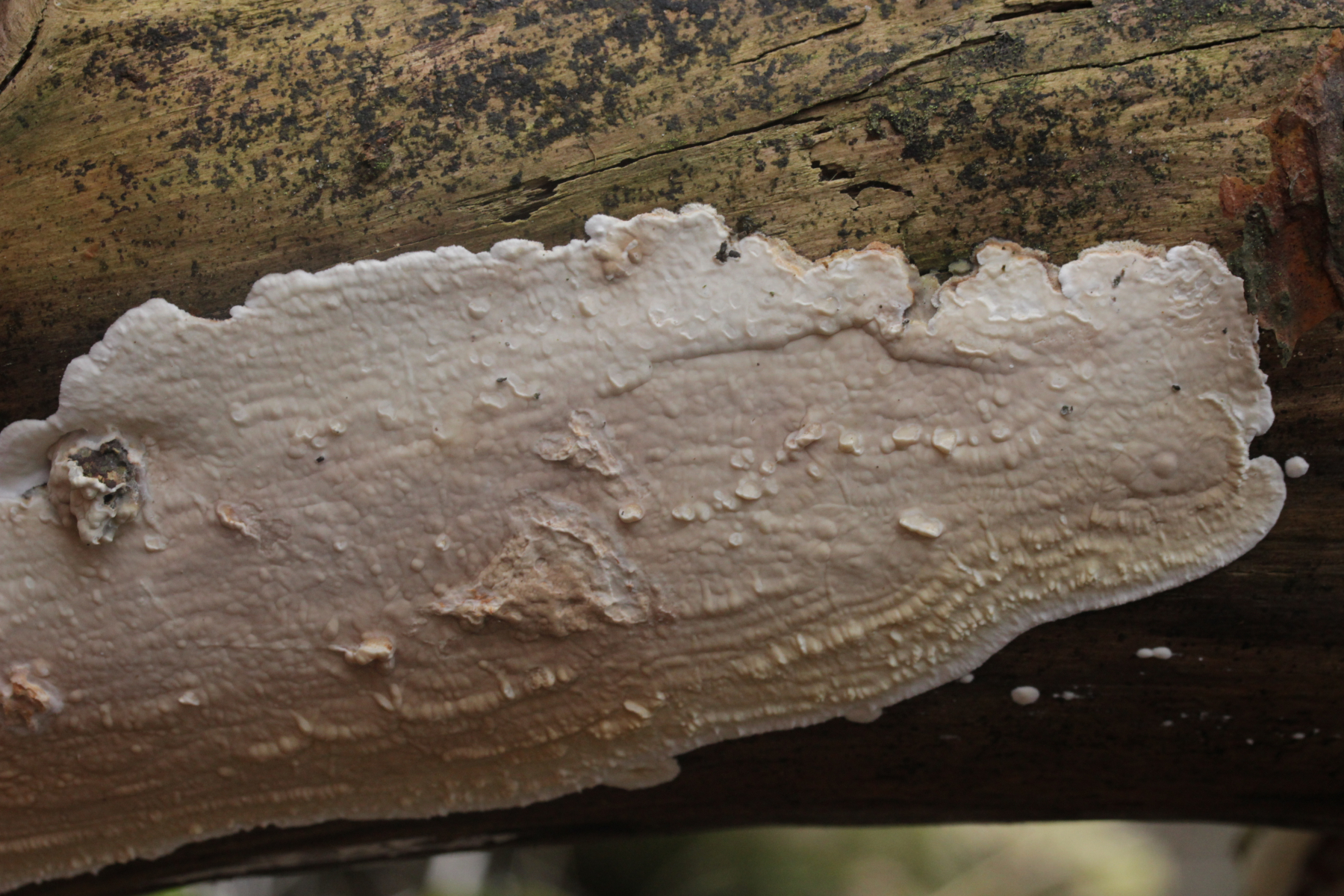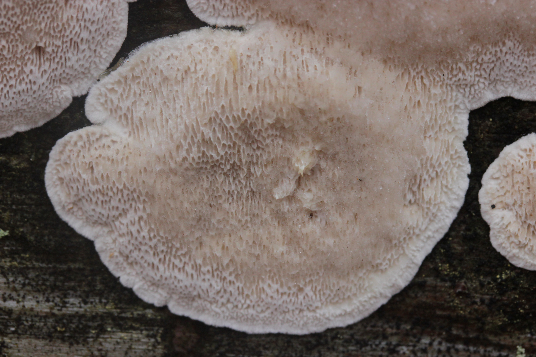 Wenn's ein anderer Fundort wäre, die Poren größer als bei Marios Fund (das könnte hier auf den Bildern aber täuschen, so daß sie größer aussehen als sie waren), und der Pilz außergewöhnlich weich und innen ganz glasig war: Das hier hat schon eine gewisse Ähnlichkeit mit angetrockneten Fruchtkörpern von >Parmastomyces mollissimus<. Ist es aber natürlich nicht, wenn nicht so weich und an Marios bekanntem Stamm gefunden.