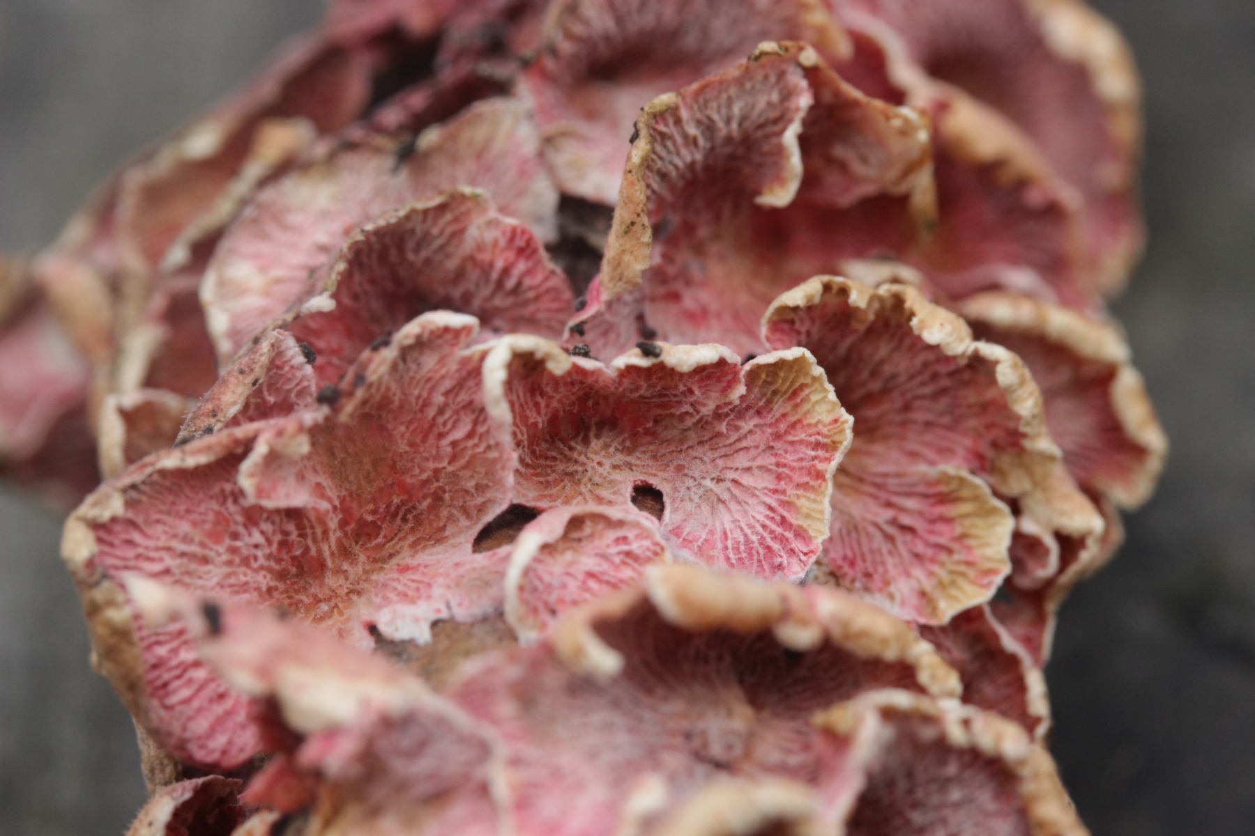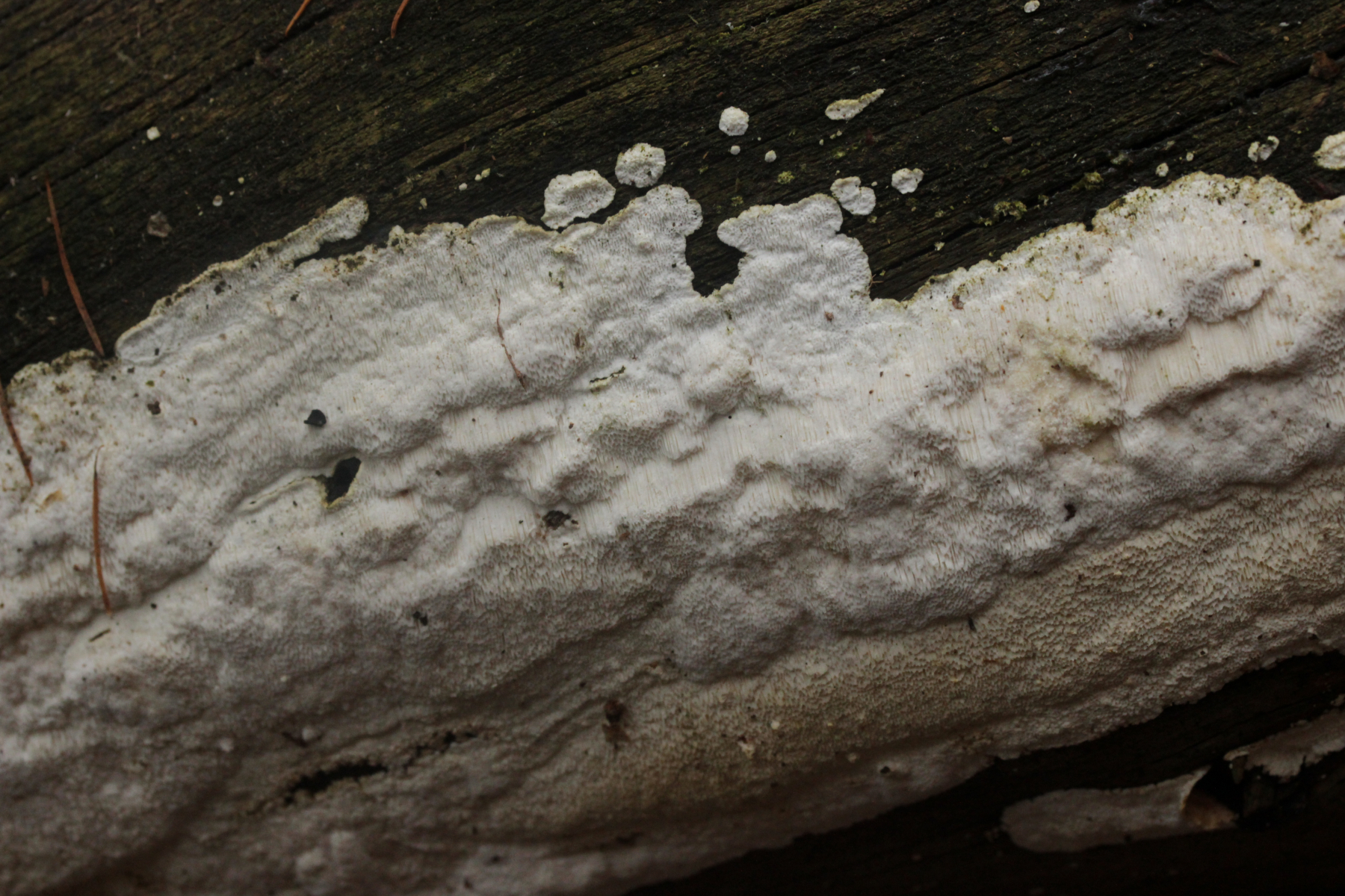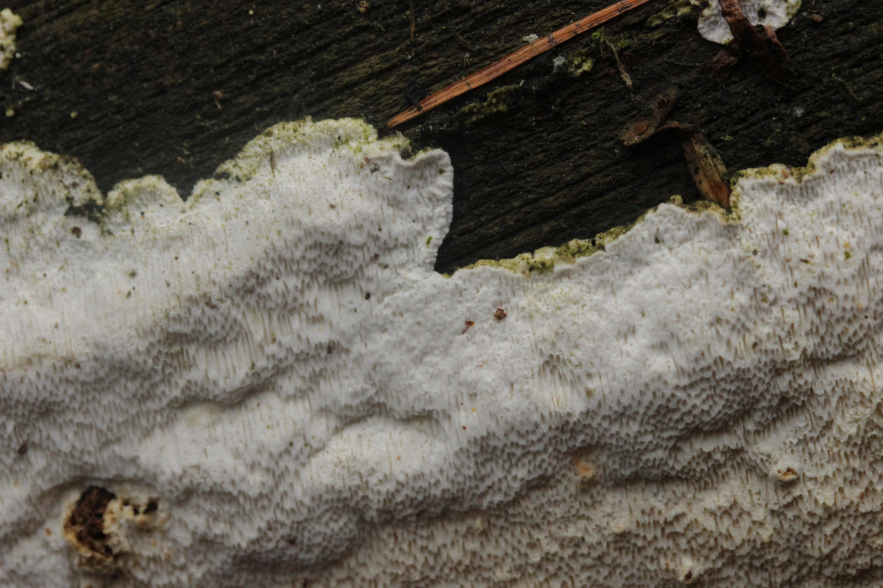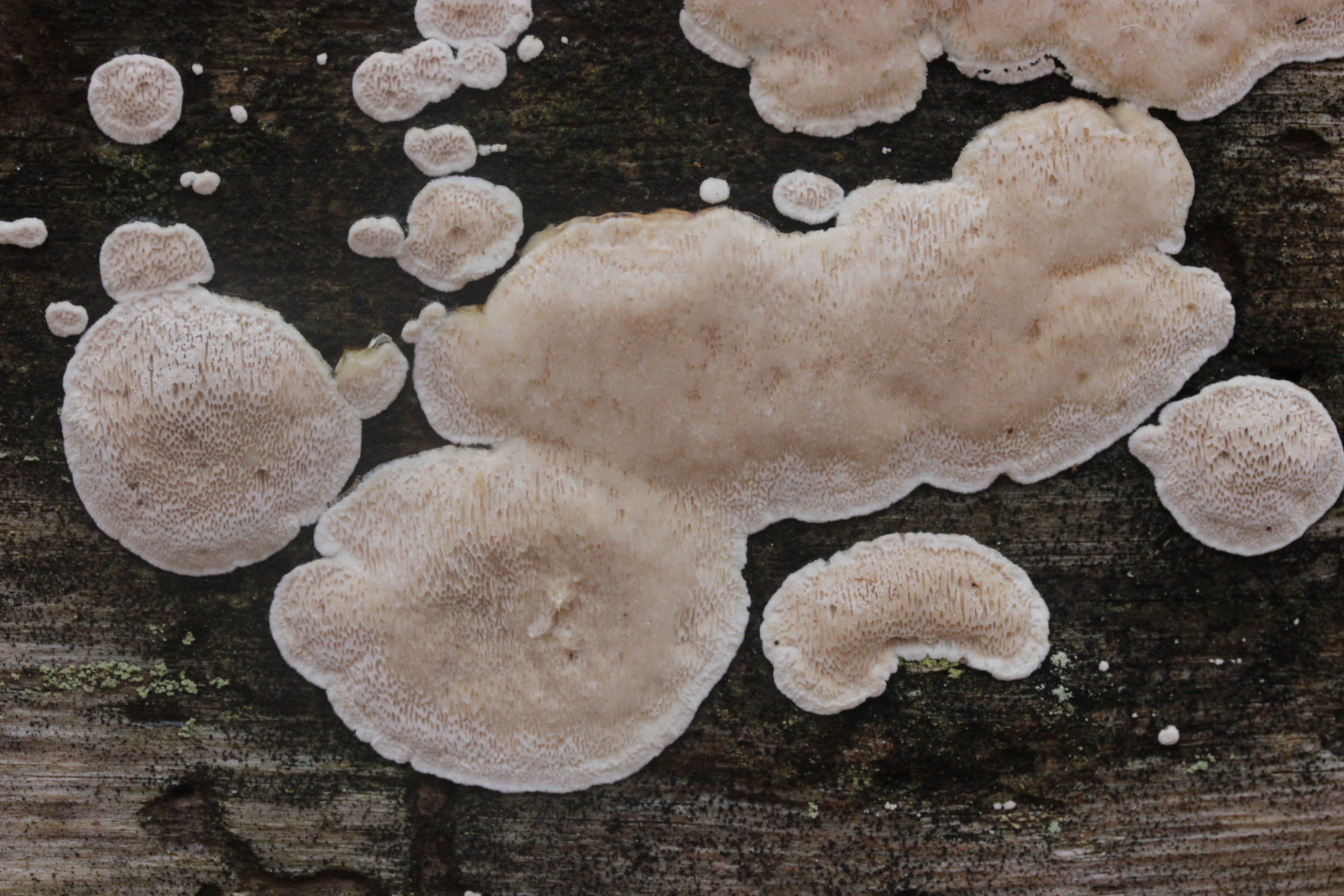 Wenn's ein anderer Fundort wäre, die Poren größer als bei Marios Fund (das könnte hier auf den Bildern aber täuschen, so daß sie größer aussehen als sie waren), und der Pilz außergewöhnlich weich und innen ganz glasig war: Das hier hat schon eine gewisse Ähnlichkeit mit angetrockneten Fruchtkörpern von >Parmastomyces mollissimus<. Ist es aber natürlich nicht, wenn nicht so weich und an Marios bekanntem Stamm gefunden.