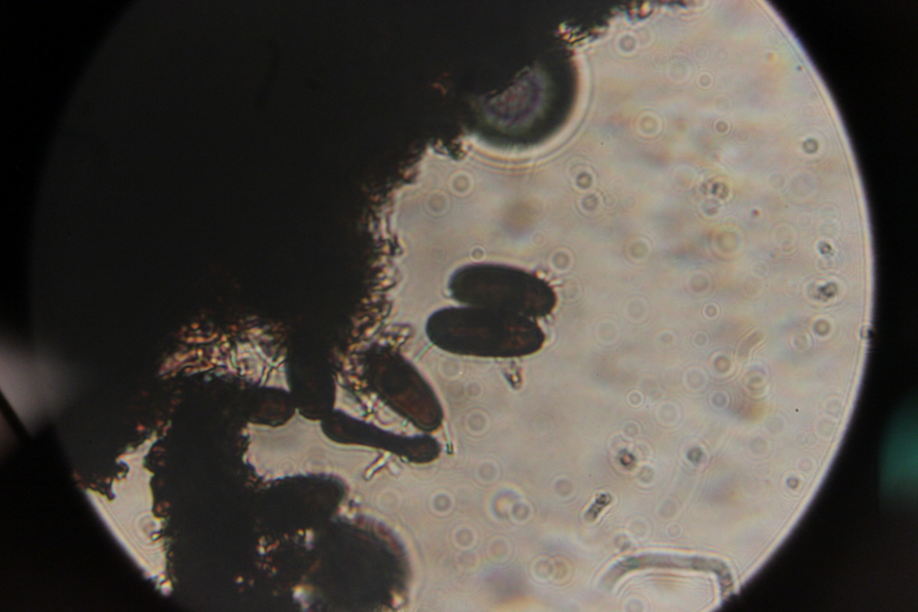 Bei Ellis & Ellis finde ich zu deiner Idee Sporenmaße von 40-50 x 12-17 µm. Das würde ich jetzt mal ausschließen, zumal die Sporen auch anders geformt sind. Hattest du mal hiermit verglichen? Wie groß ist denn die Vergrößerung bei den gezeigten Mikrobildern? Leider finde ich spontan auch keine Art, die mir besser gefallen würde.