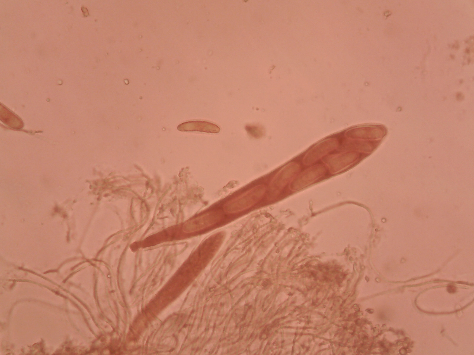 Um welche Fruchtkörperform handelt es sich? Perithecium oder Apothecium? Dann müssten wir erstmal ein paar chemische Tests machen; je nachdem, welche Fruchtkörperform du da gefunden hast und dann wären noch Sporengrößen sehr hilfreich. Wir sollten erstmal wissen, in welche Gruppe dein Fund ungefähr gehört.